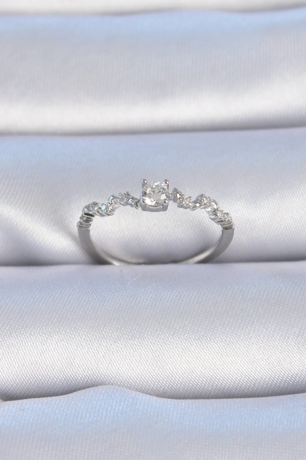 Gümüş Renk Şerit Zirkon Taşlı Kadın Yüzük