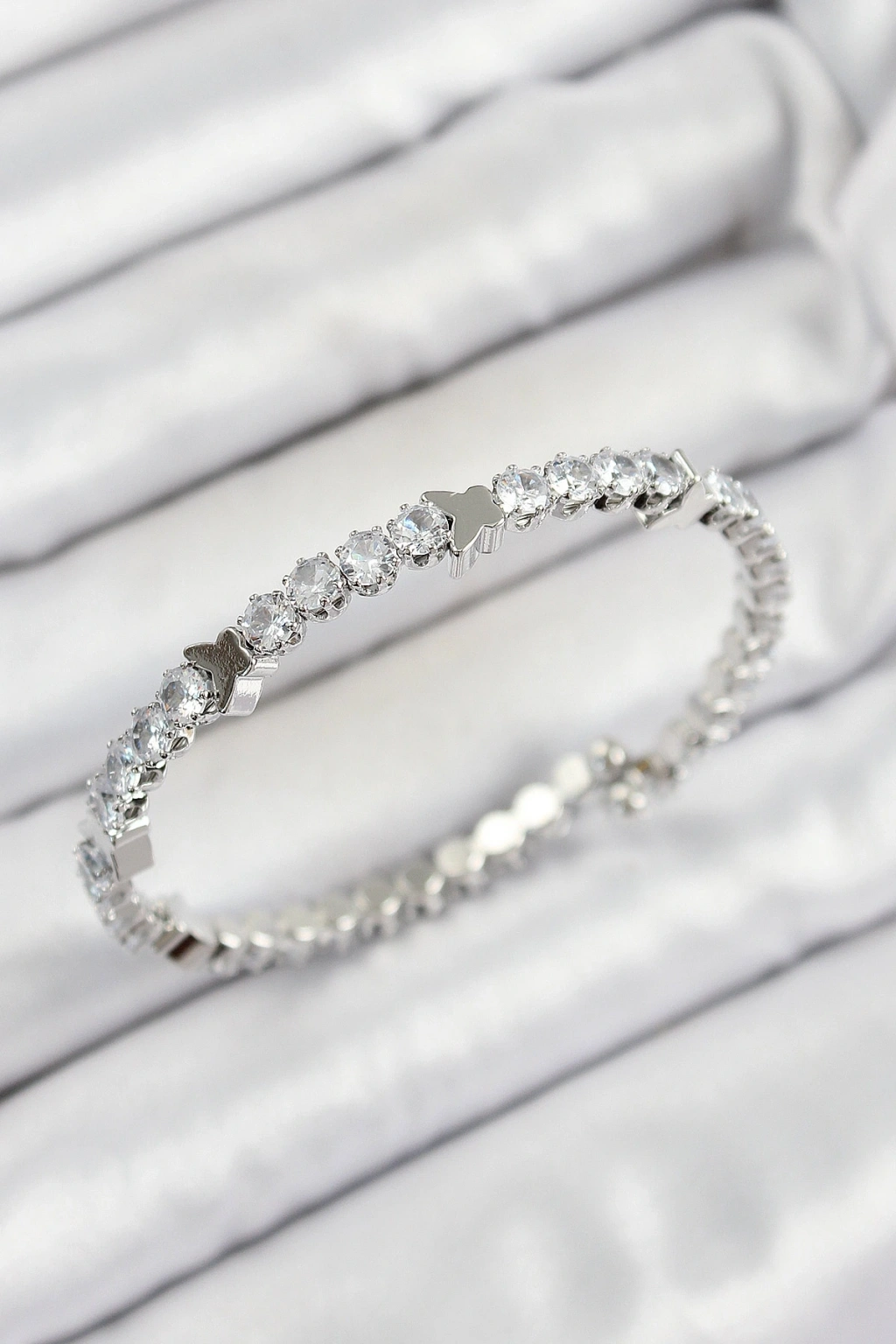 Pirinç Zirkon Taşlı Kalp Model Gümüş Renk Yaylı Kadın Bileklik