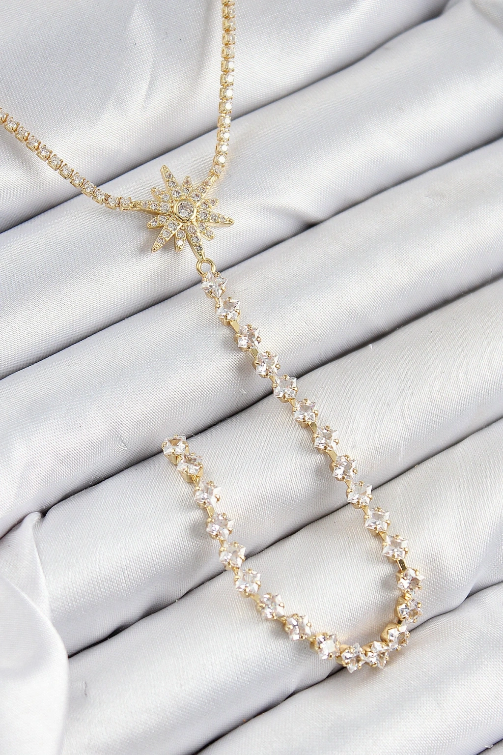 Pirinç Gold Renk Zirkon Taşlı Kutup Yıldızı Model Kadın Kolye