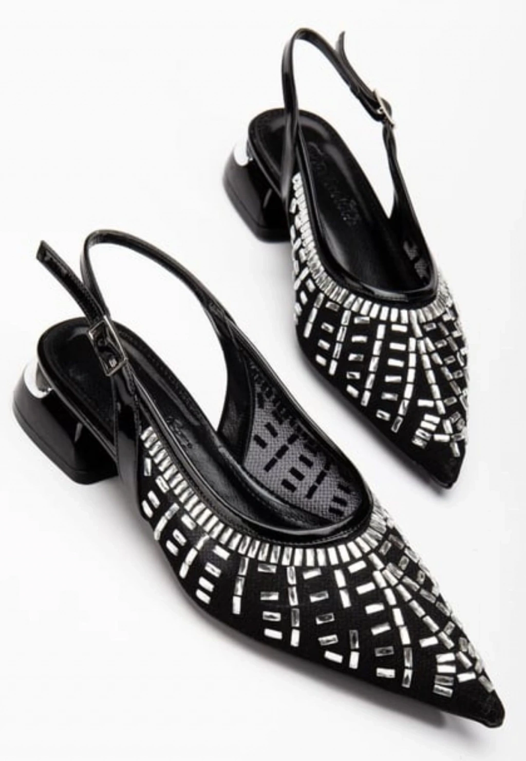 Piyar Siyah Taşlı Topuklu Ayakkabı
