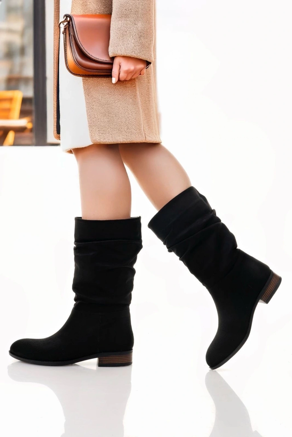 Canty Siyah Süet Körüklü Topuklu Çizme