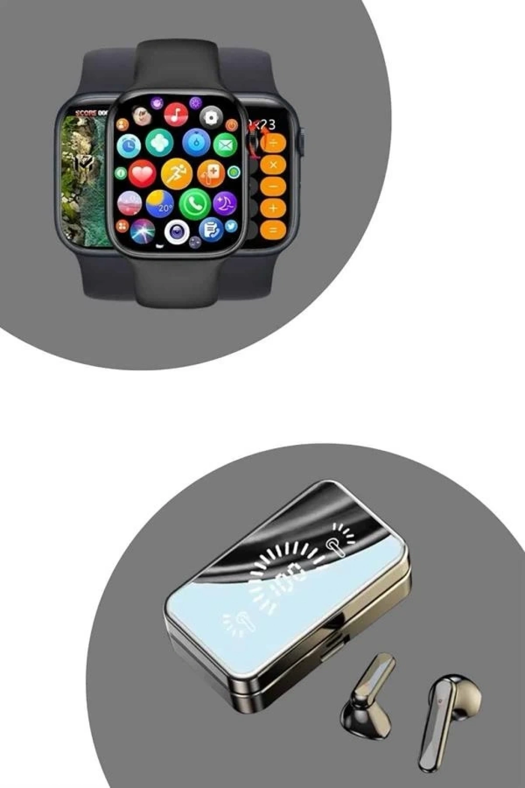 Powerbank Aynalı Bluetooth Kulaklık Ve Akıllı Saat Seti ANC Özelliği Dokunamatik
