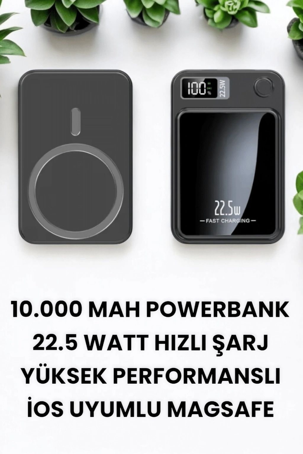 MagSafe Powerbank 10.000 mAh Kablosuz ve Dijital Ekranlı Hızlı Şarj Cihazı