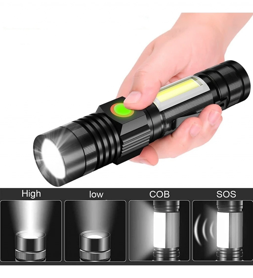Wison Ws-5454 Taktik El Feneri Usb Şarj Edilebilir Kamp Feneri Cob Zumlanabilir Mini Taşınabilir El Feneri
