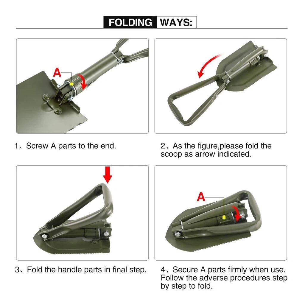 Katlanmış hali 25 cm uzunluğunda olan bu katlanabilir küreği, yer kaplamadan yanınızda bulundurulabilir ve kolayca taşıyabilirsiniz.