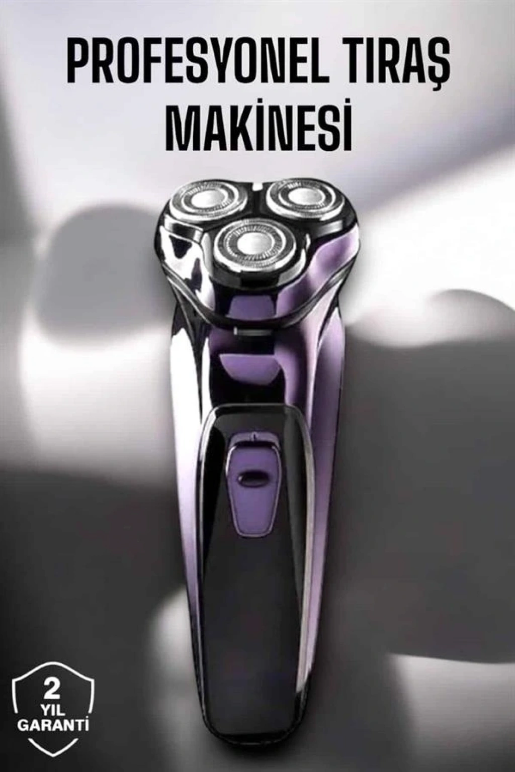 Profesyonel Gümüş Şarjlı Tıraş Makinesi – 3 Başlık, 120 Dakika Kullanım Süresi, Kompakt ve Hafif Tasarım