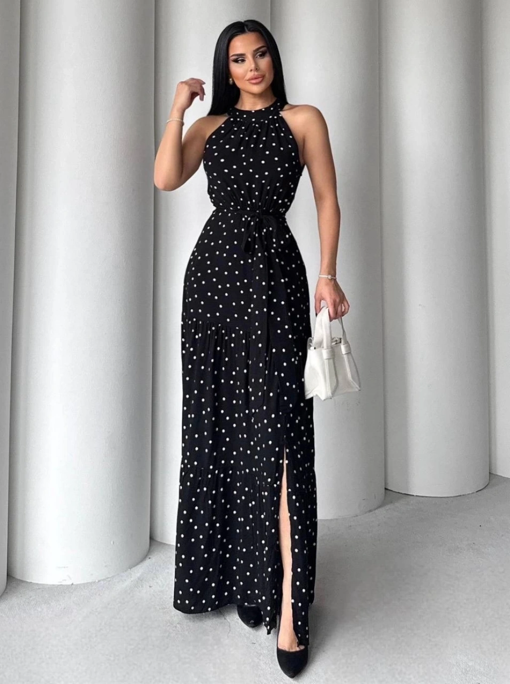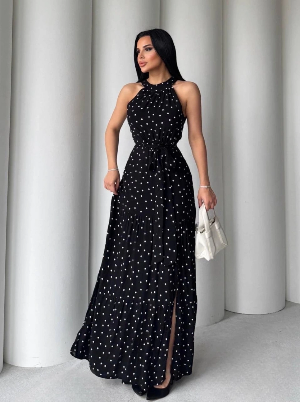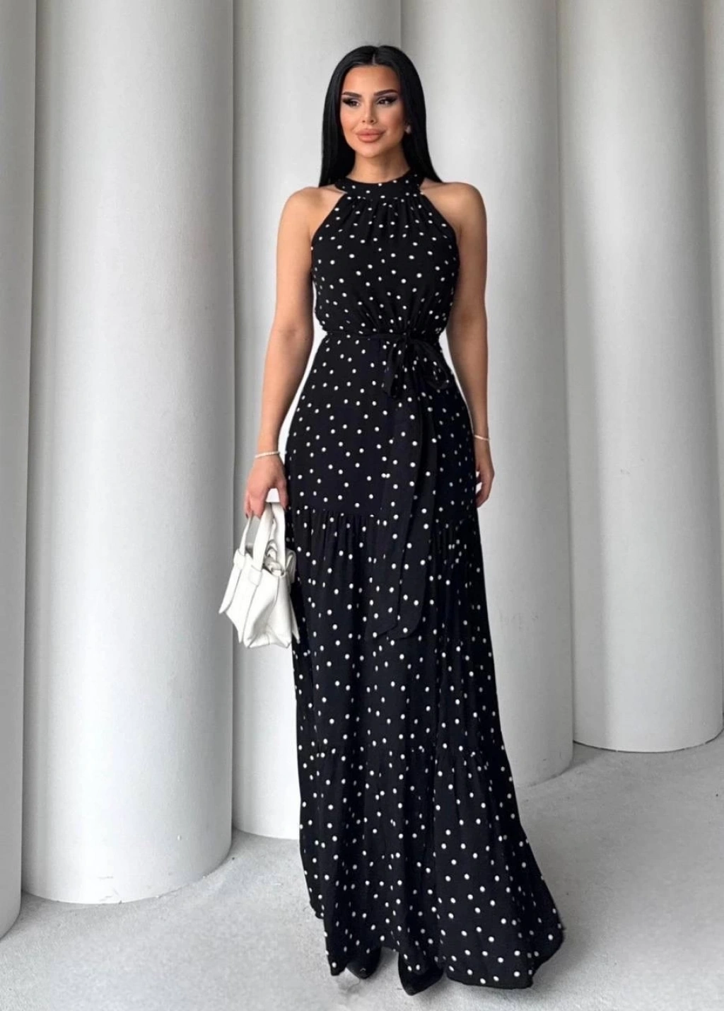 Askılı ch kumaş düğmeli elbise siyahbeyaz h265007