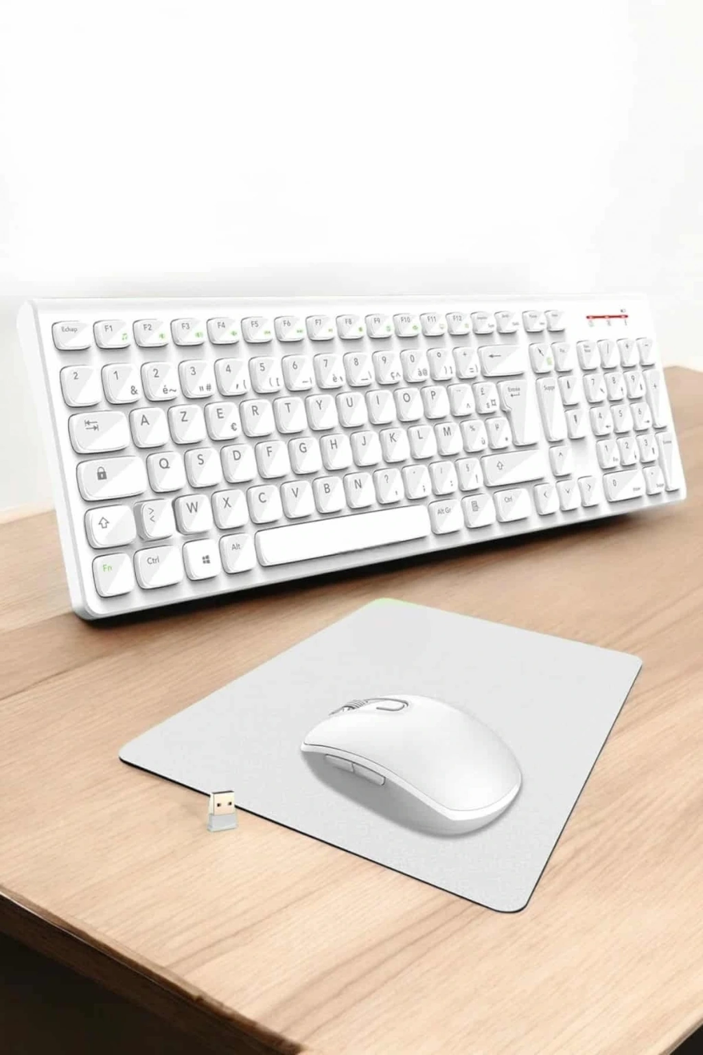 Q Klavye Beyaz Klavye Ve Mouse Seti Kablosuz USB Girişli