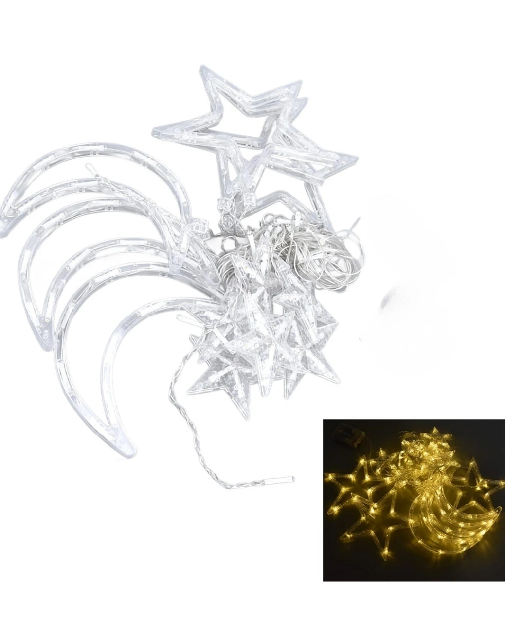 Hilal Yıldız Perde LED Işık 2 Modlu Sıcak Beyaz Dekoratif Aydınlatma