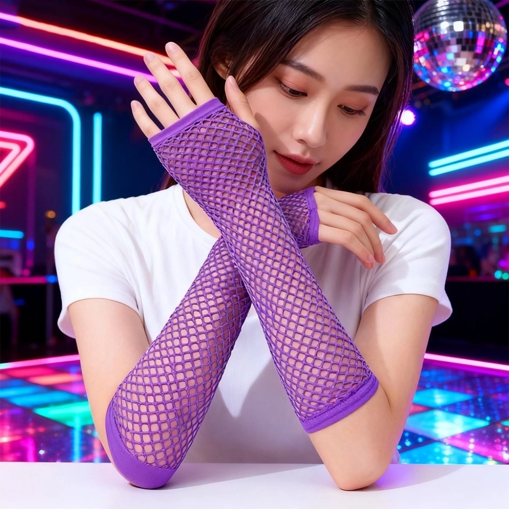 Retro Neon Fuşya File Parmaksız Eldiven 26 cm