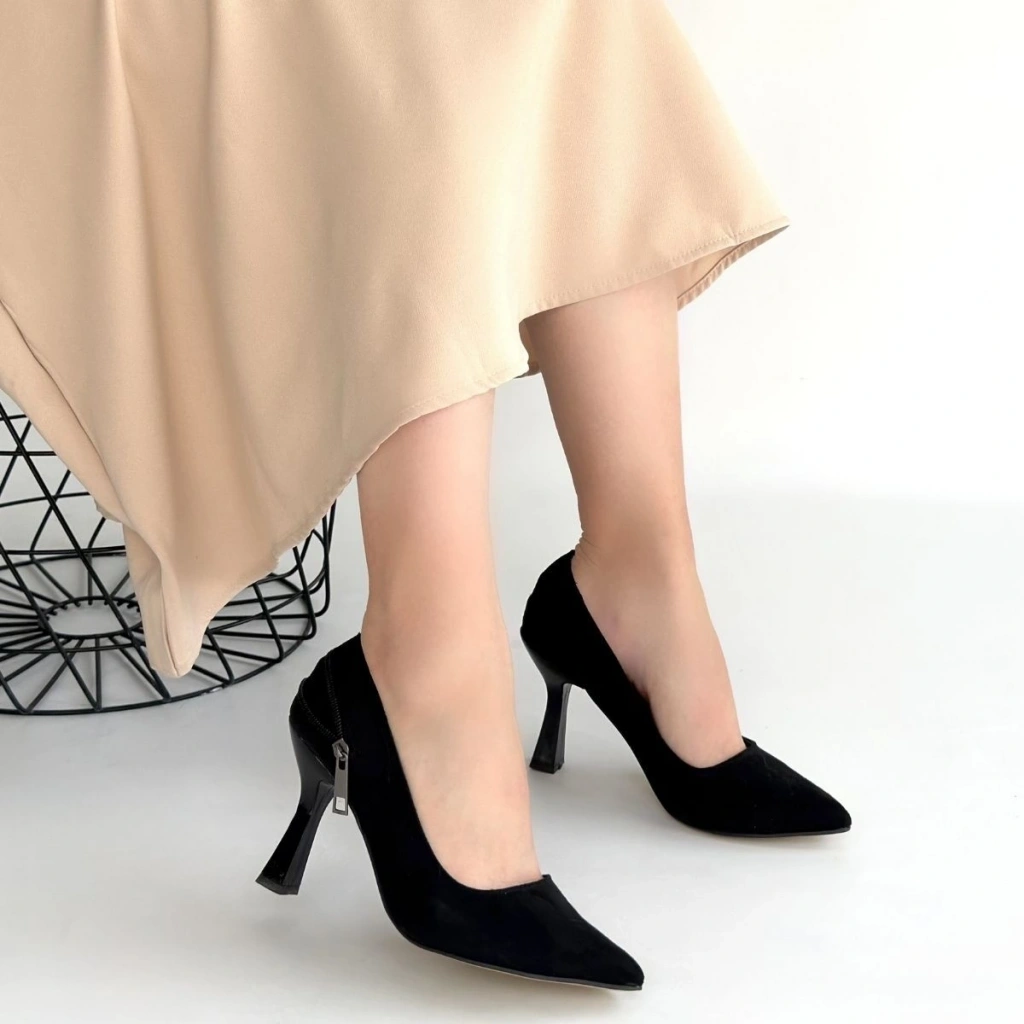 Retta Siyah Süet Topuklu Ayakkabı