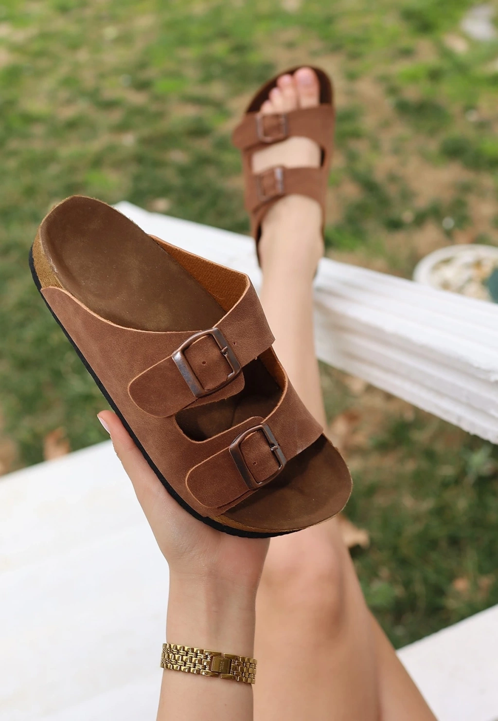 Loera Pemba Nubuk Çift Tokalı Terlik