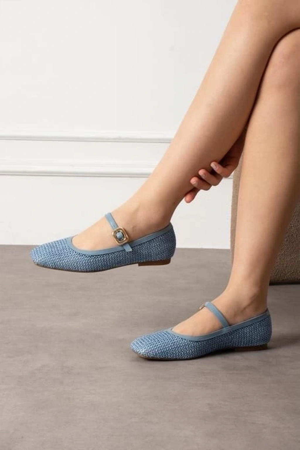 Rives Mavi Cilt Hasır Dokumalı Babet Ayakkabı