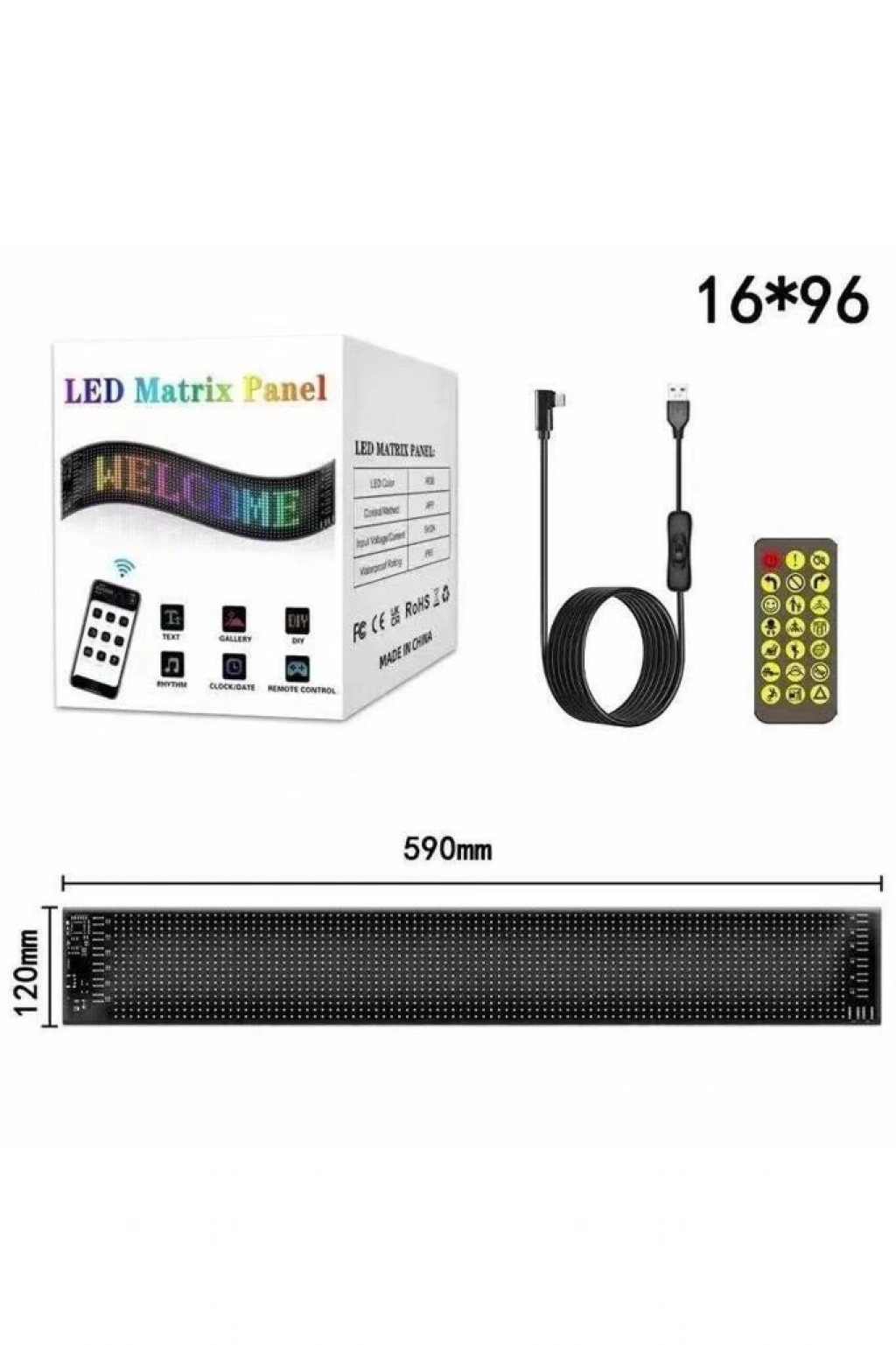 RP1259 LED Matrix Panel 16x64cm Telefon Kontrollü Kayar LED Animasyon Aydınlatma