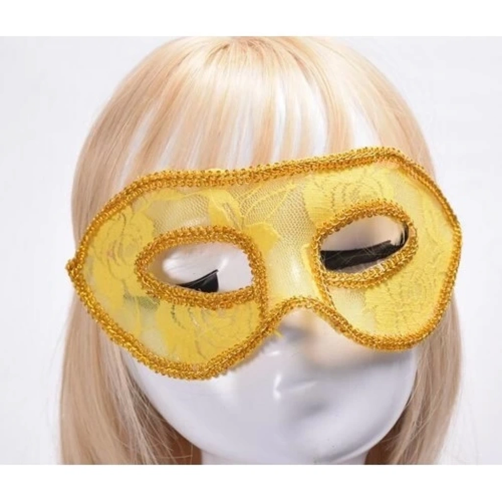 Sarı Dantel Tül Parti Maskesi