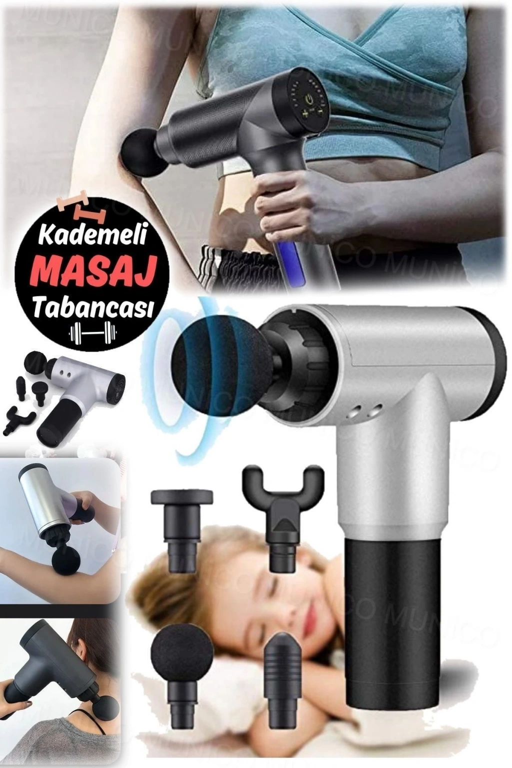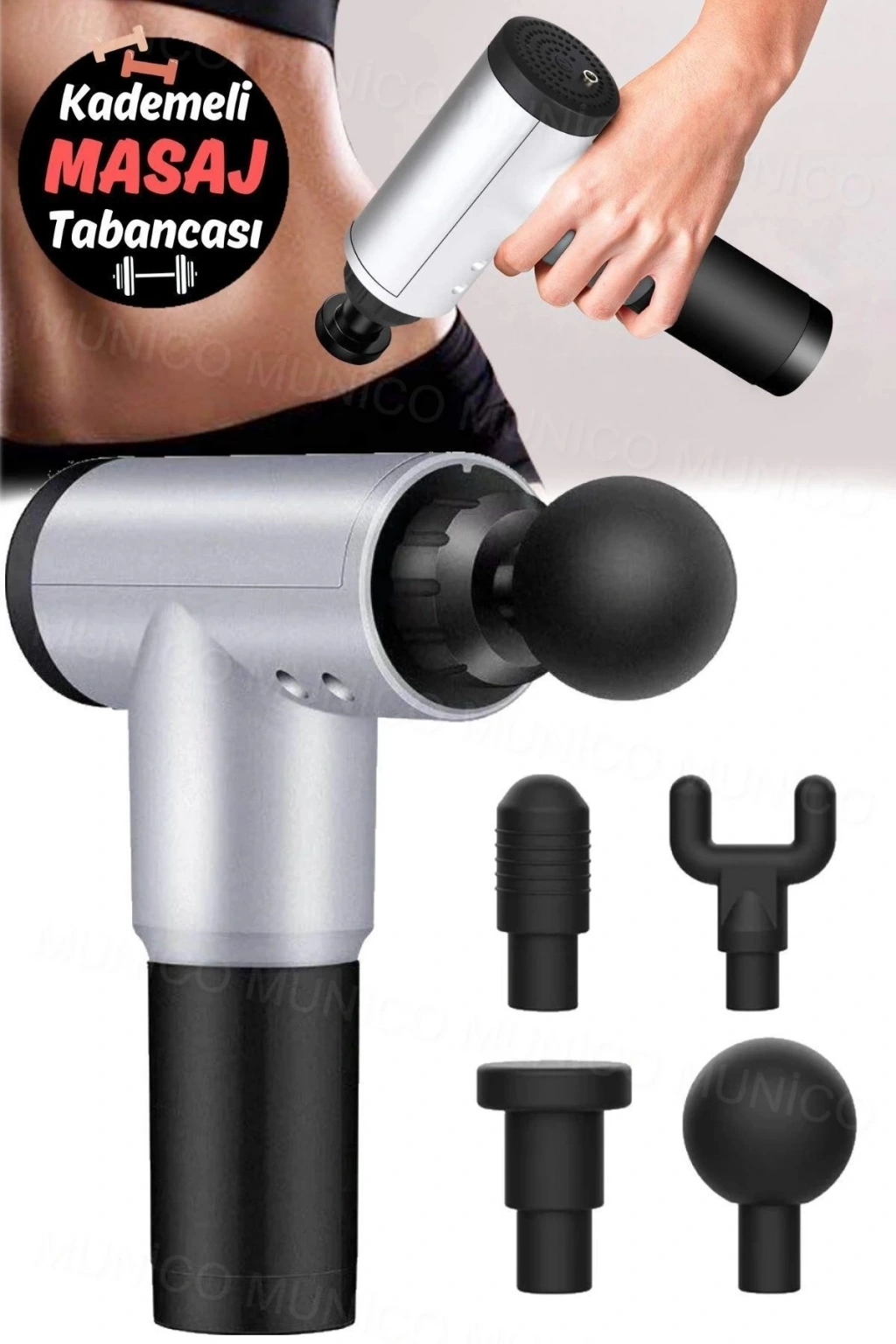 Akıllı Titreşim Teknolojili Masaj Tabancası – 4 Başlıklı Sessiz Motorlu Kas Gerginliği Giderici