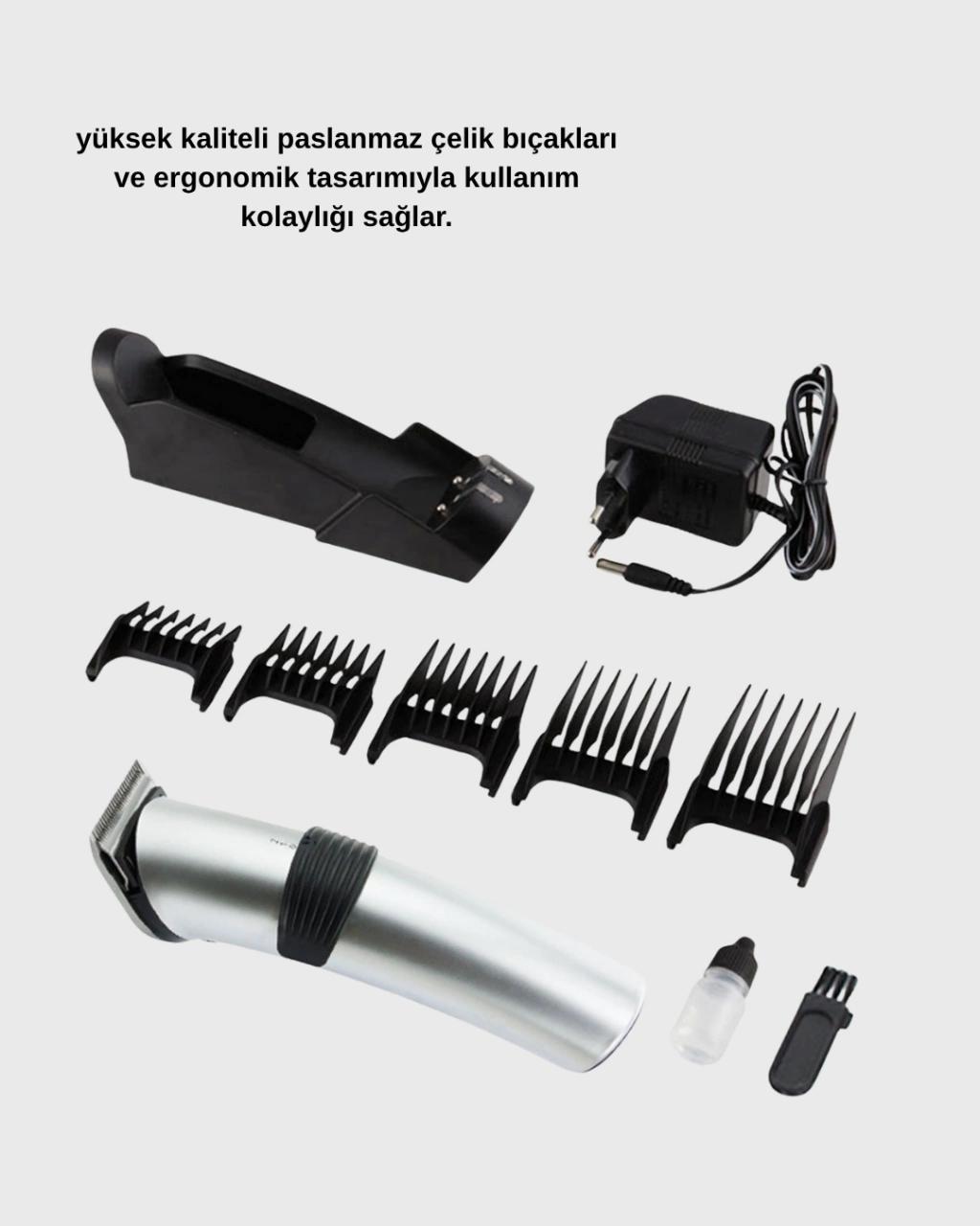 Şarjlı Saç ve Sakal Kesme Makinesi – Paslanmaz Çelik Bıçak, Ayarlanabilir Başlık