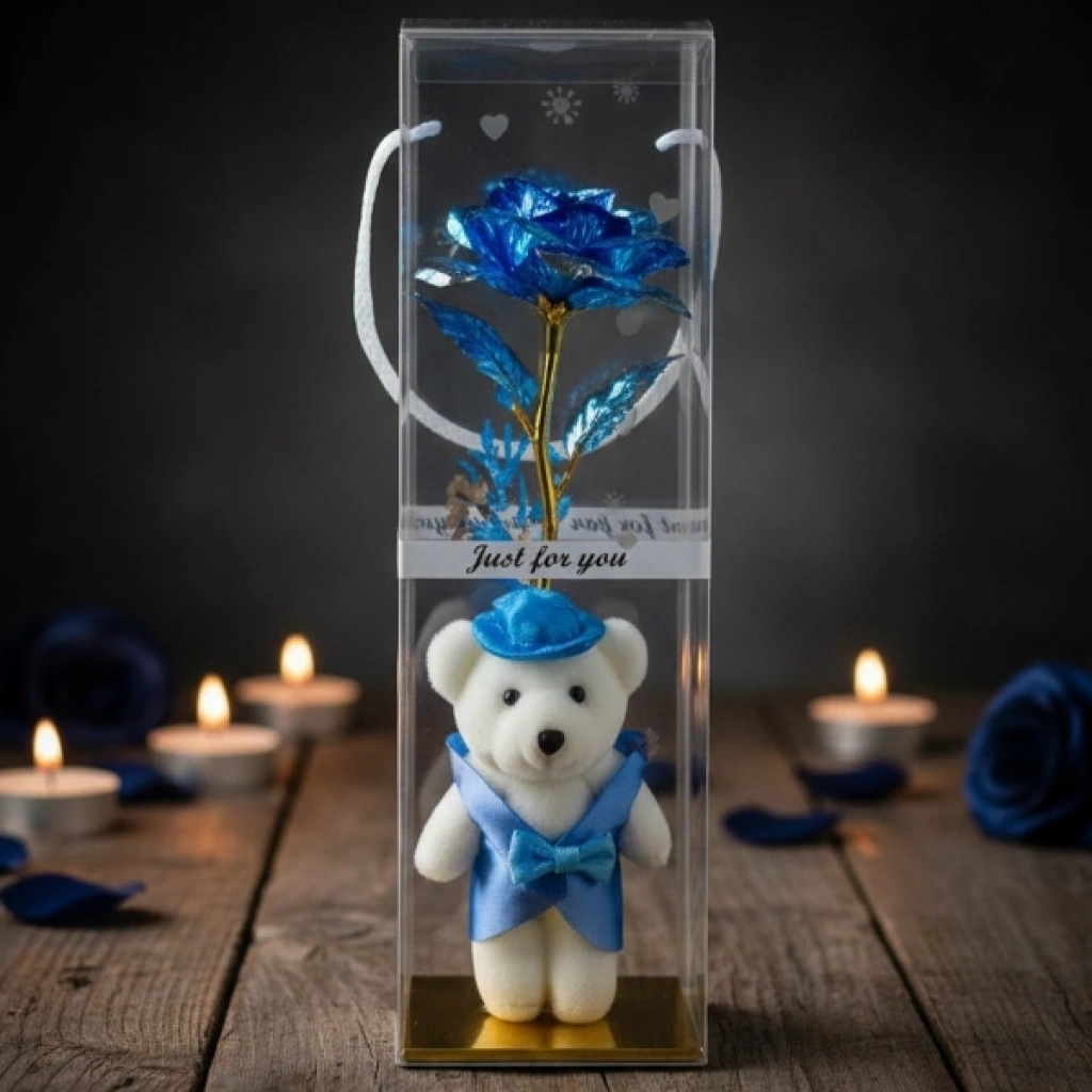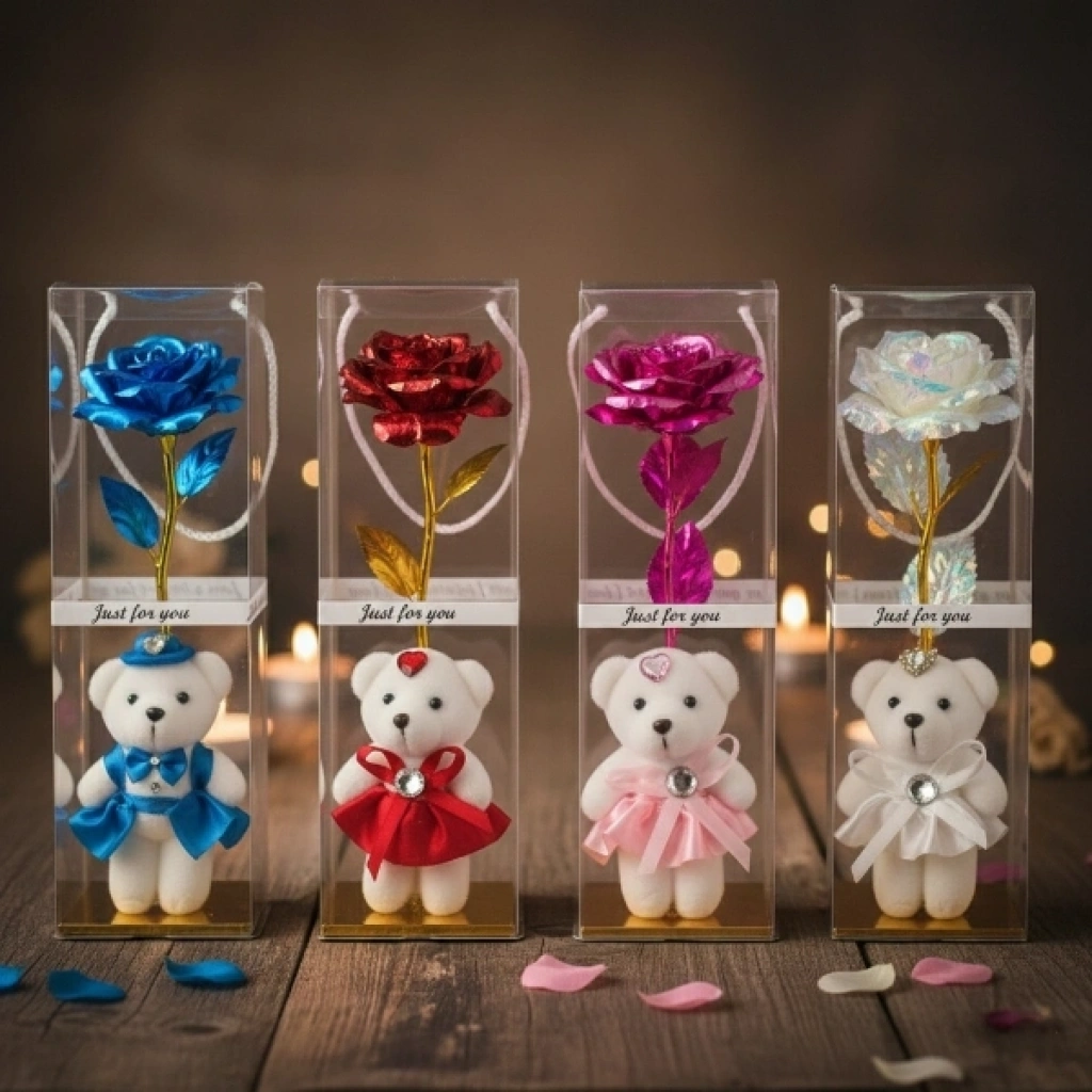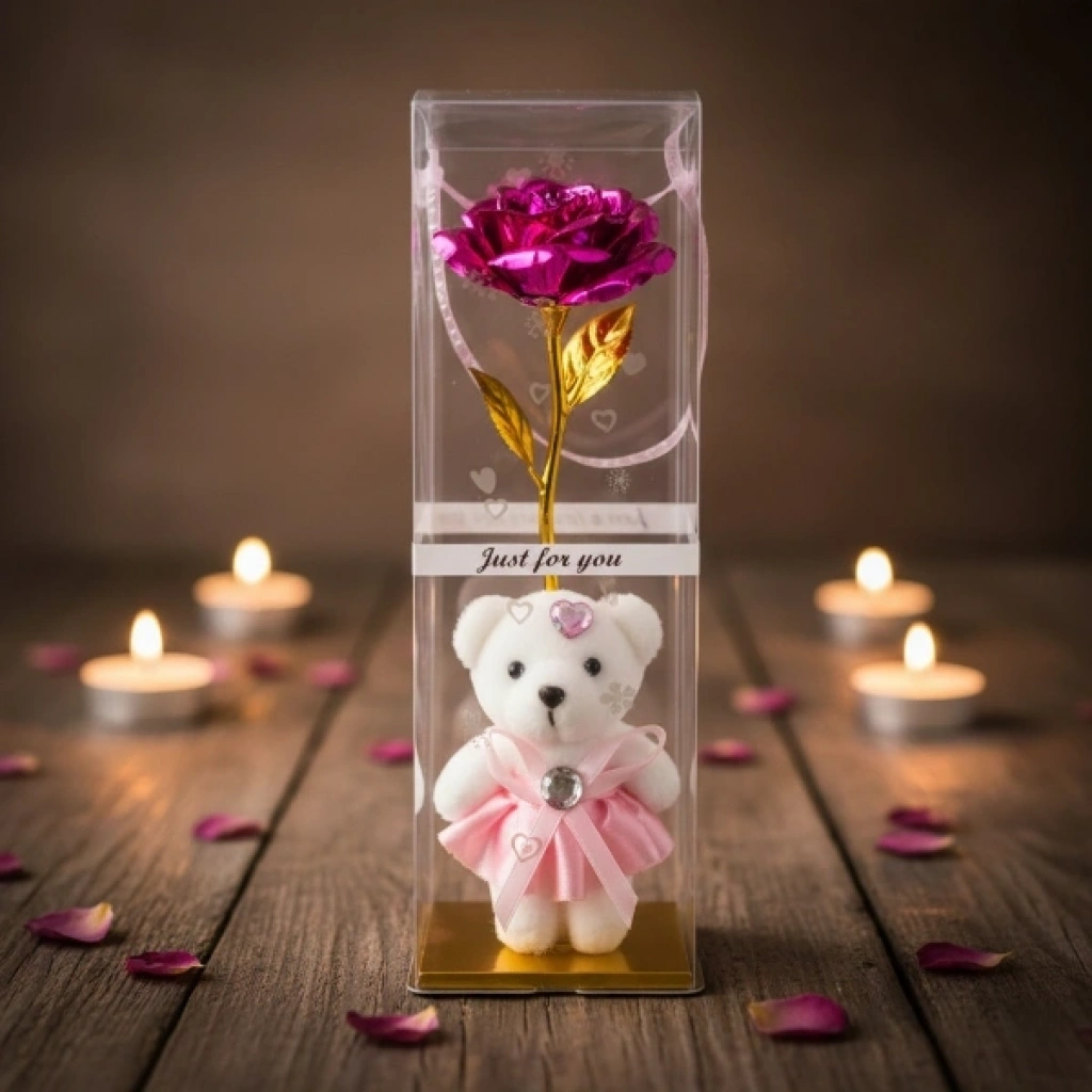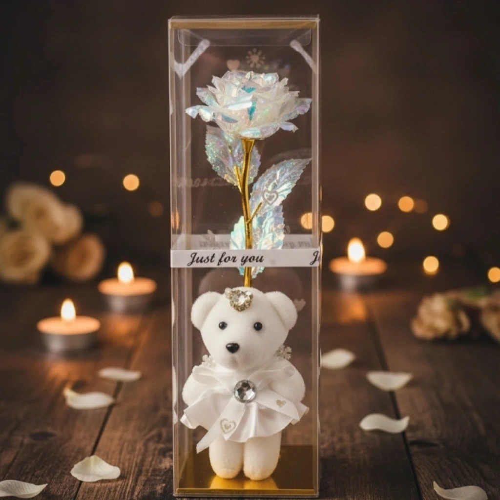 Şeffaf Kutulu Ayıcıklı Sonsuzluk Gülü