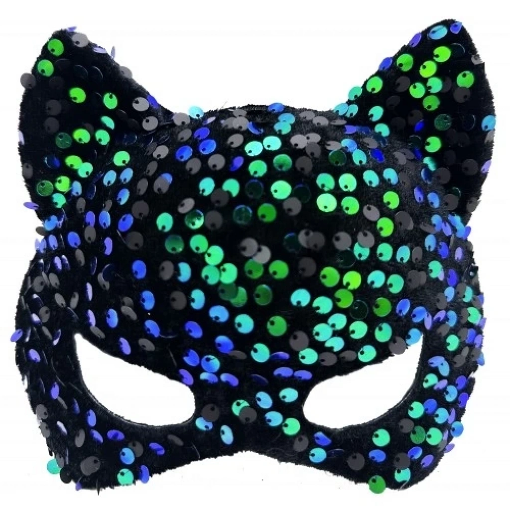 Siyah Kadife Mavi Yeşil Parti Maskesi