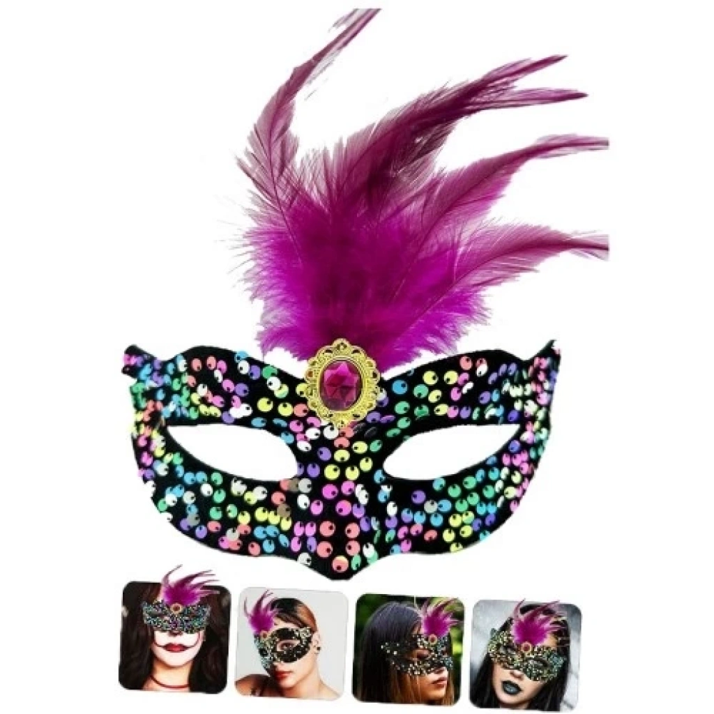 Siyah Kadife Rengarenk Payetli Pembe Parti Maskesi
