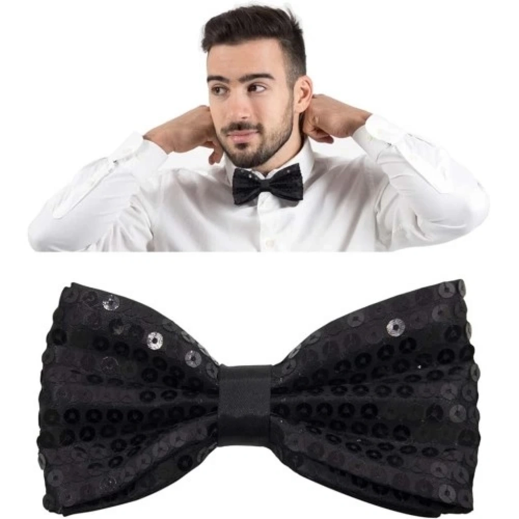 Siyah Payetli Pullu Papyon