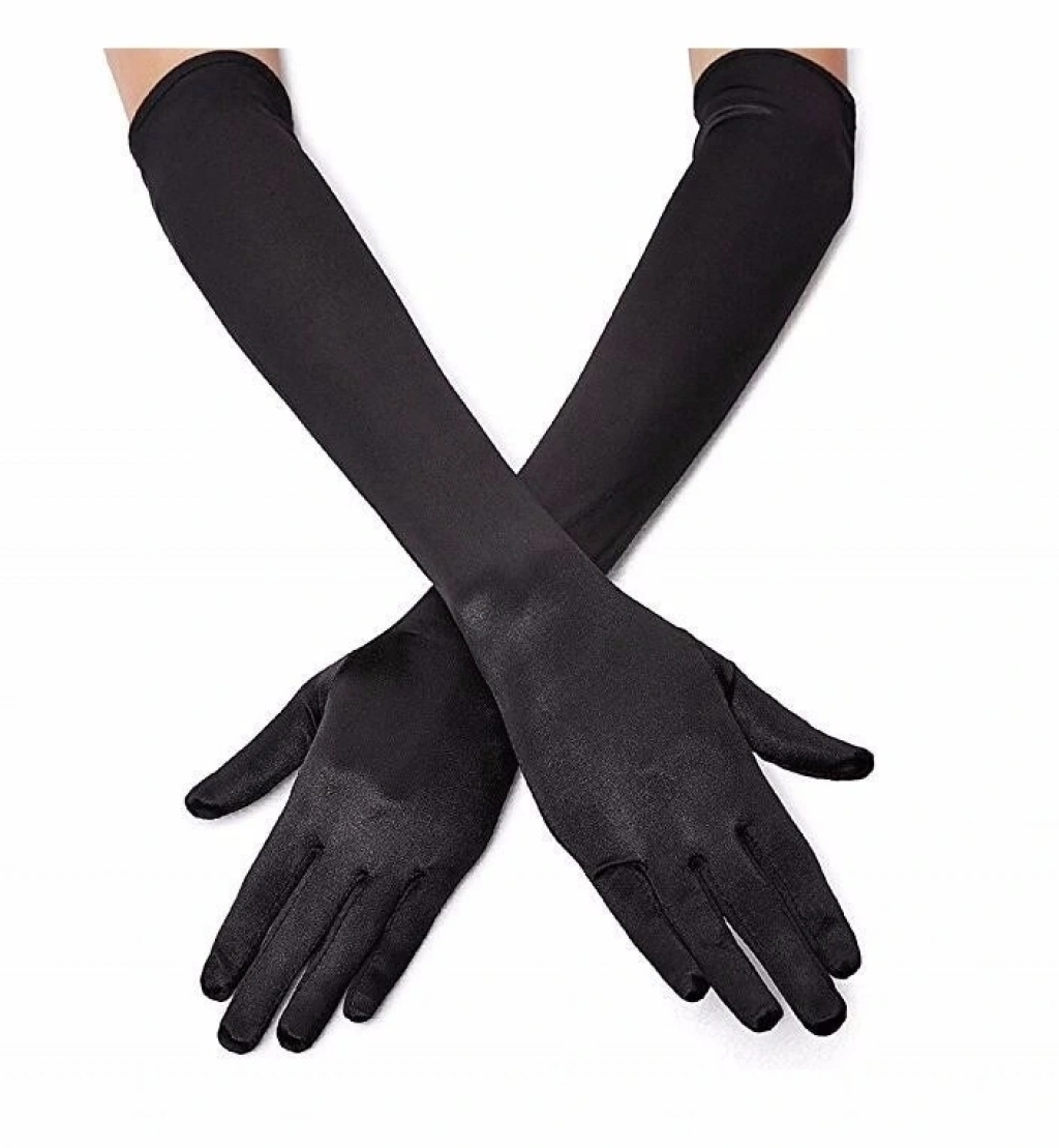 Siyah Renk Dirseğe Kadar Uzun Kumaş Eldiven (5047)