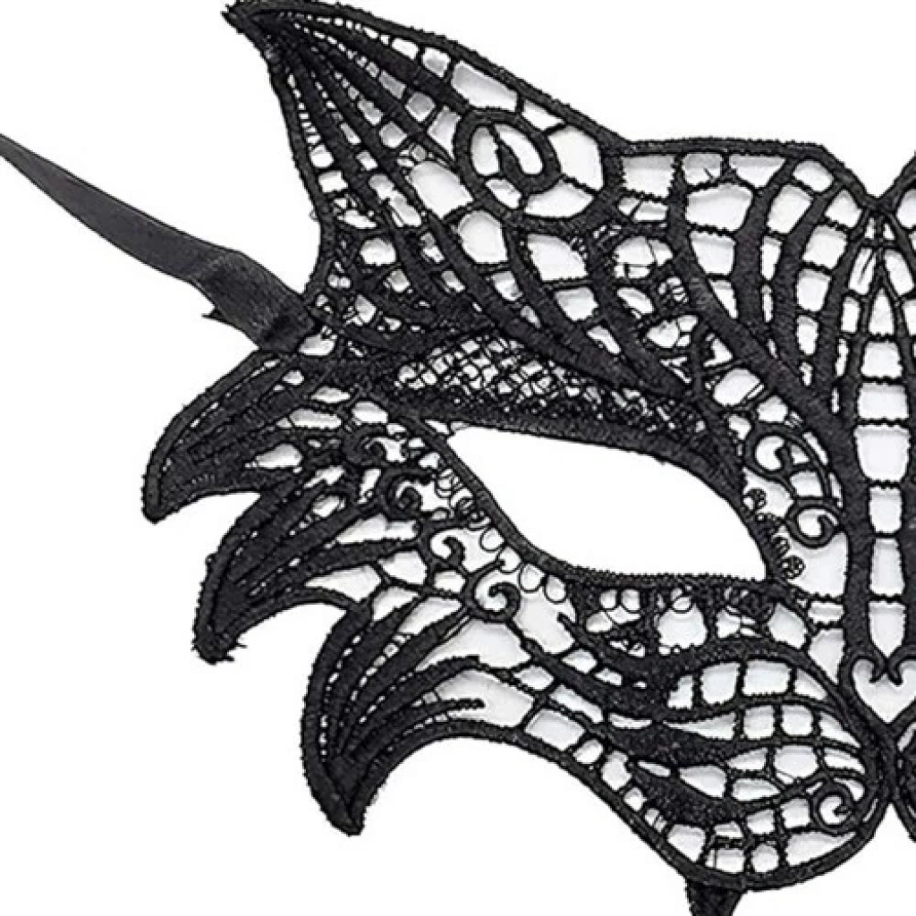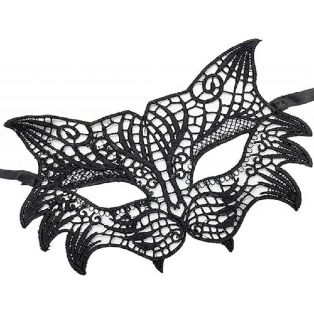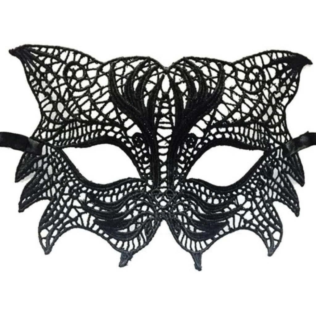 Siyah Renk Kedi Model Dantel İşleme Parti Maskesi