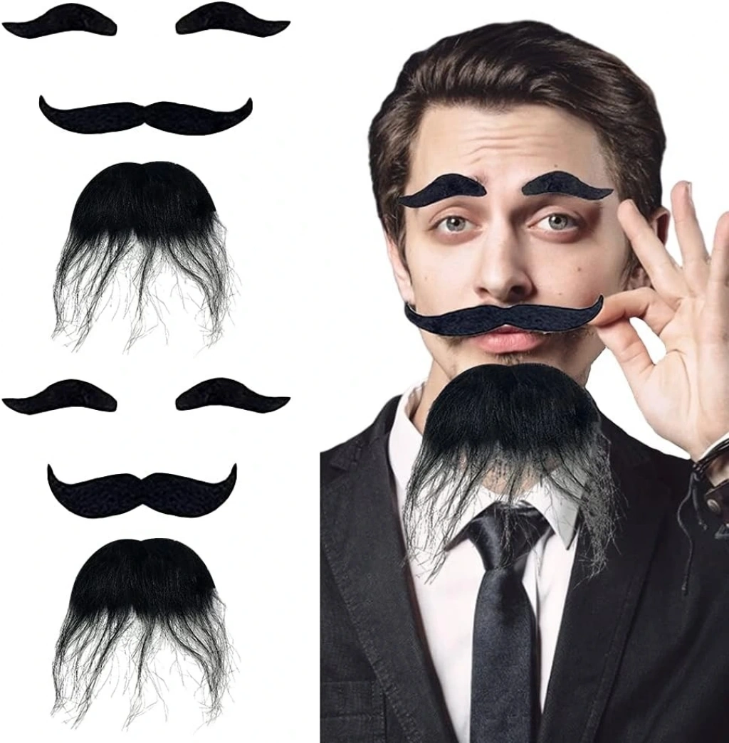 Siyah Renk Kendinden Yapışkanlı Takma Sakal Bıyık ve Kaş Seti (5047)