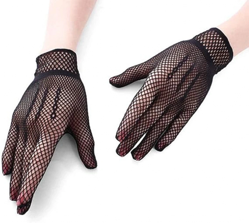 Kısa Boy Güpürlü Siyah Puantiyeli Tül Eldiven Siyah Renk