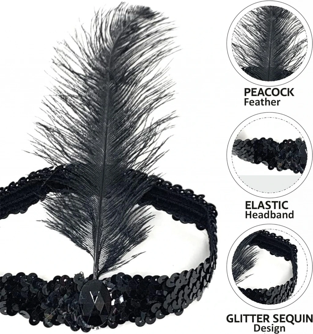 Siyah Renk Tüylü Çarliston Saç Bandı Kafa Bandı (5047)