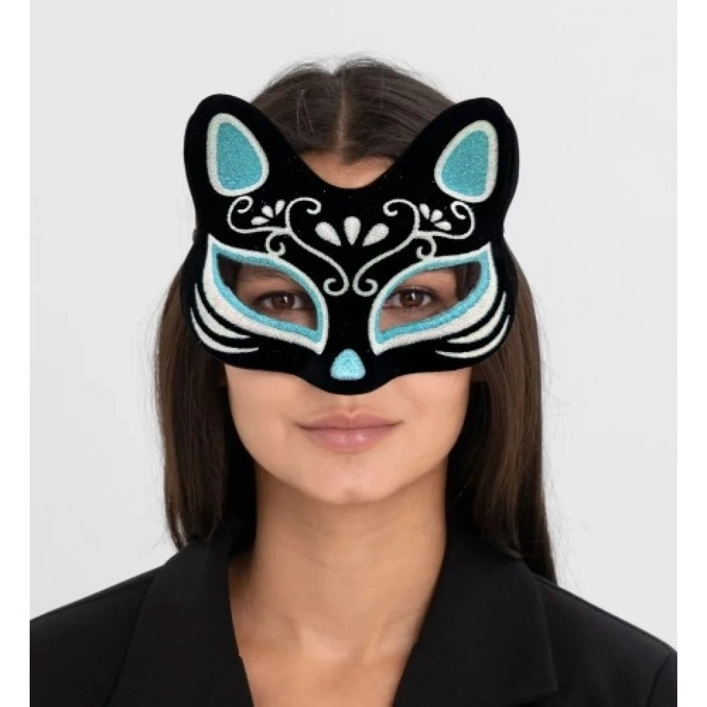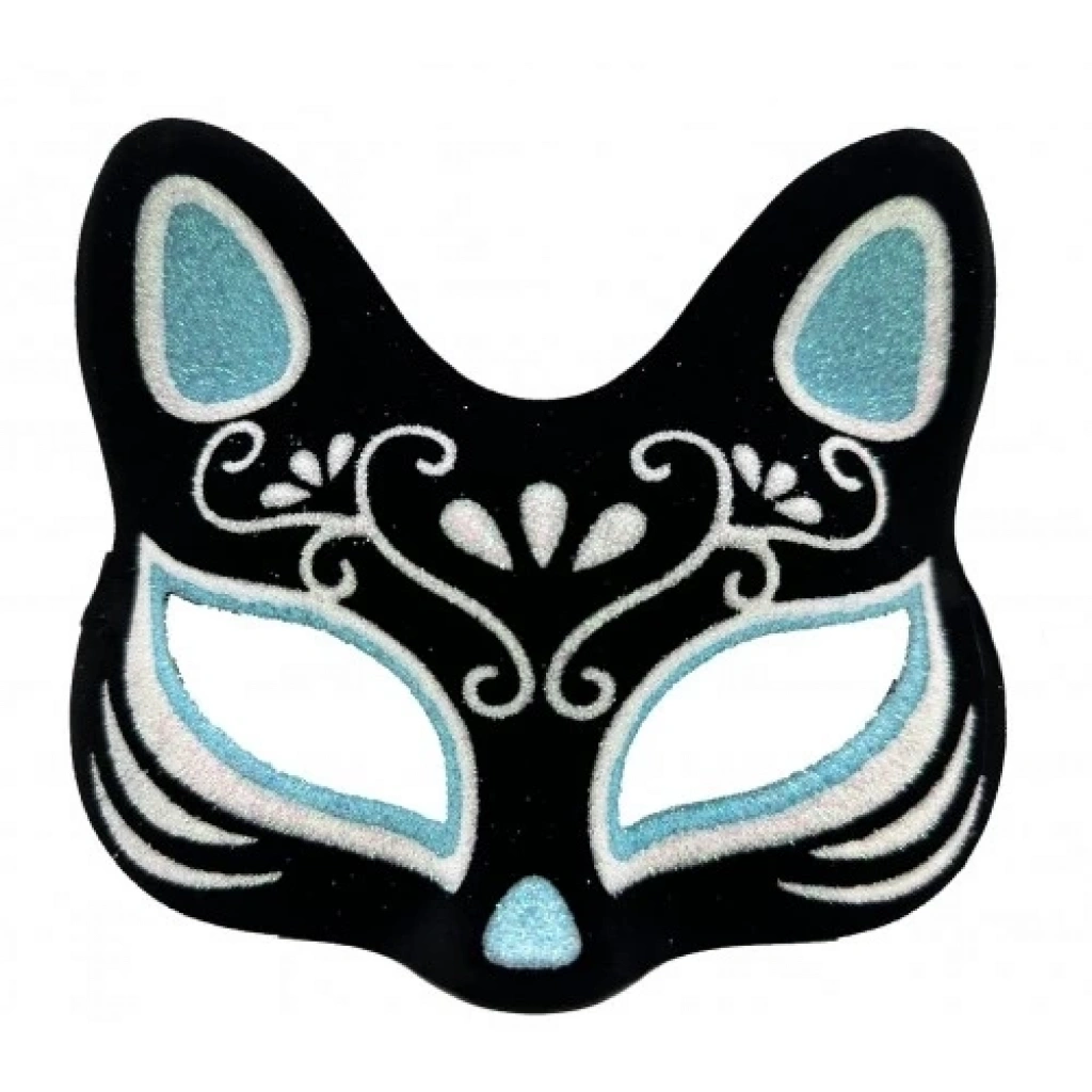 Siyah Süet Gümüş Mavi Simli Kedi Maskesi
