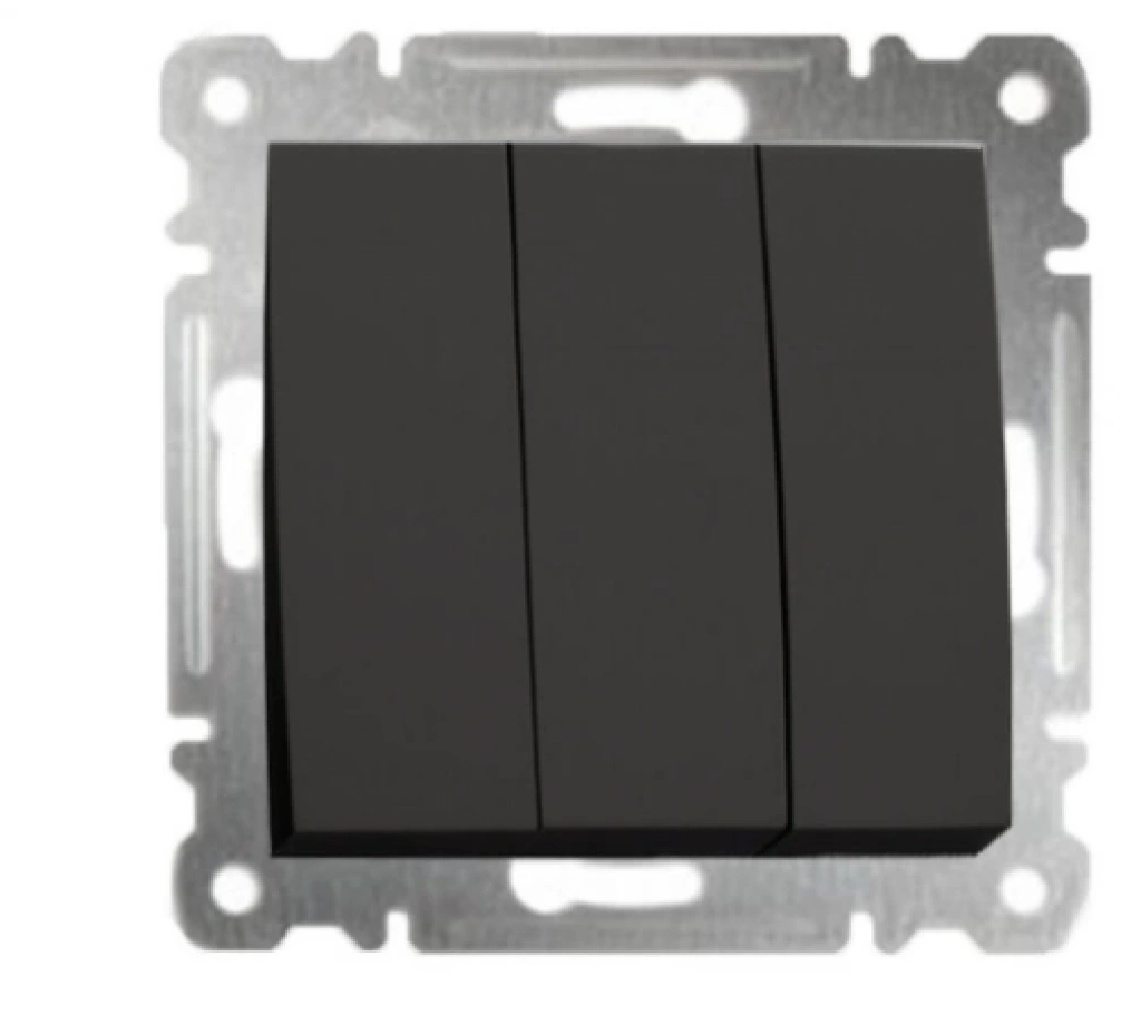 Siyah Üçlü Anahtar Parlak Çerçevesiz - Priz ve Anahtar İçin Uyumlu Çerçeve