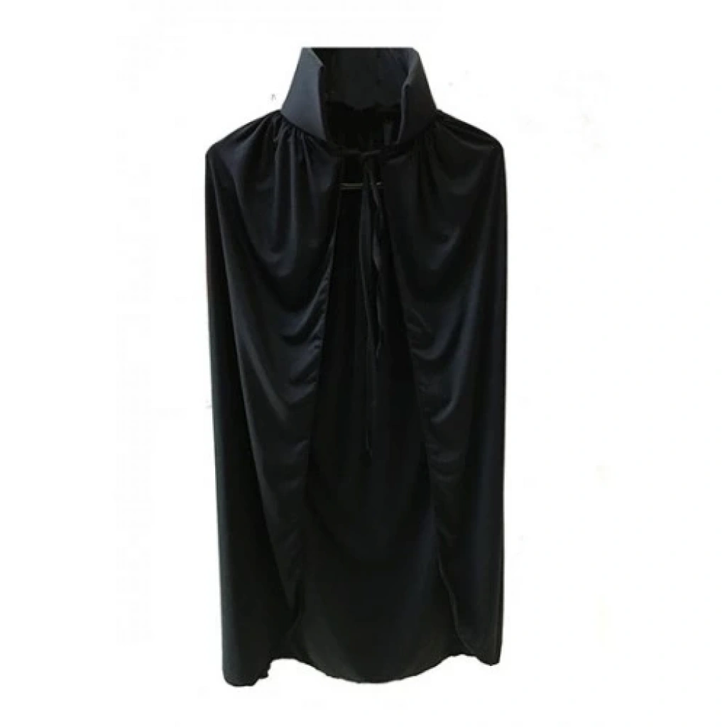 Siyah Kapüşonlu 120 cm Pelerin ve Beyaz Boyanabilir Tam Yüz Maske