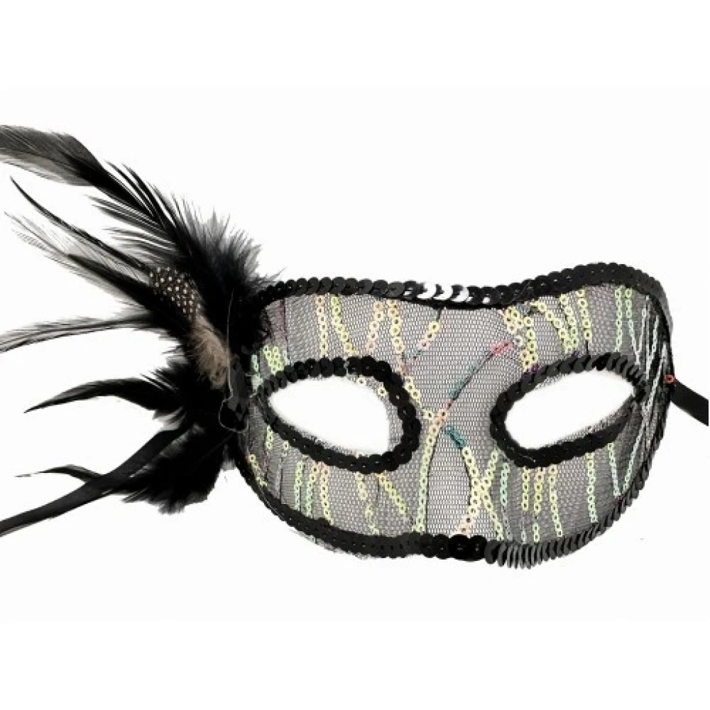 Siyah Yandan Tüylü Pul Payet Maskesi