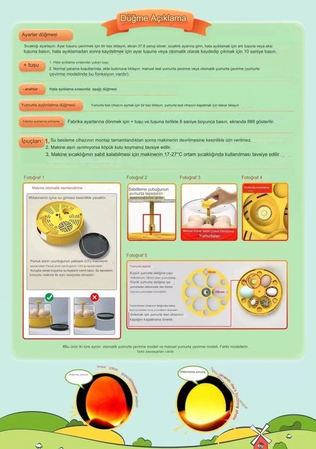 Tam Otomatik Ev Tipi Kuluçka Makinesi Isı ve Nem Ayarlı Gün Sayaçlı