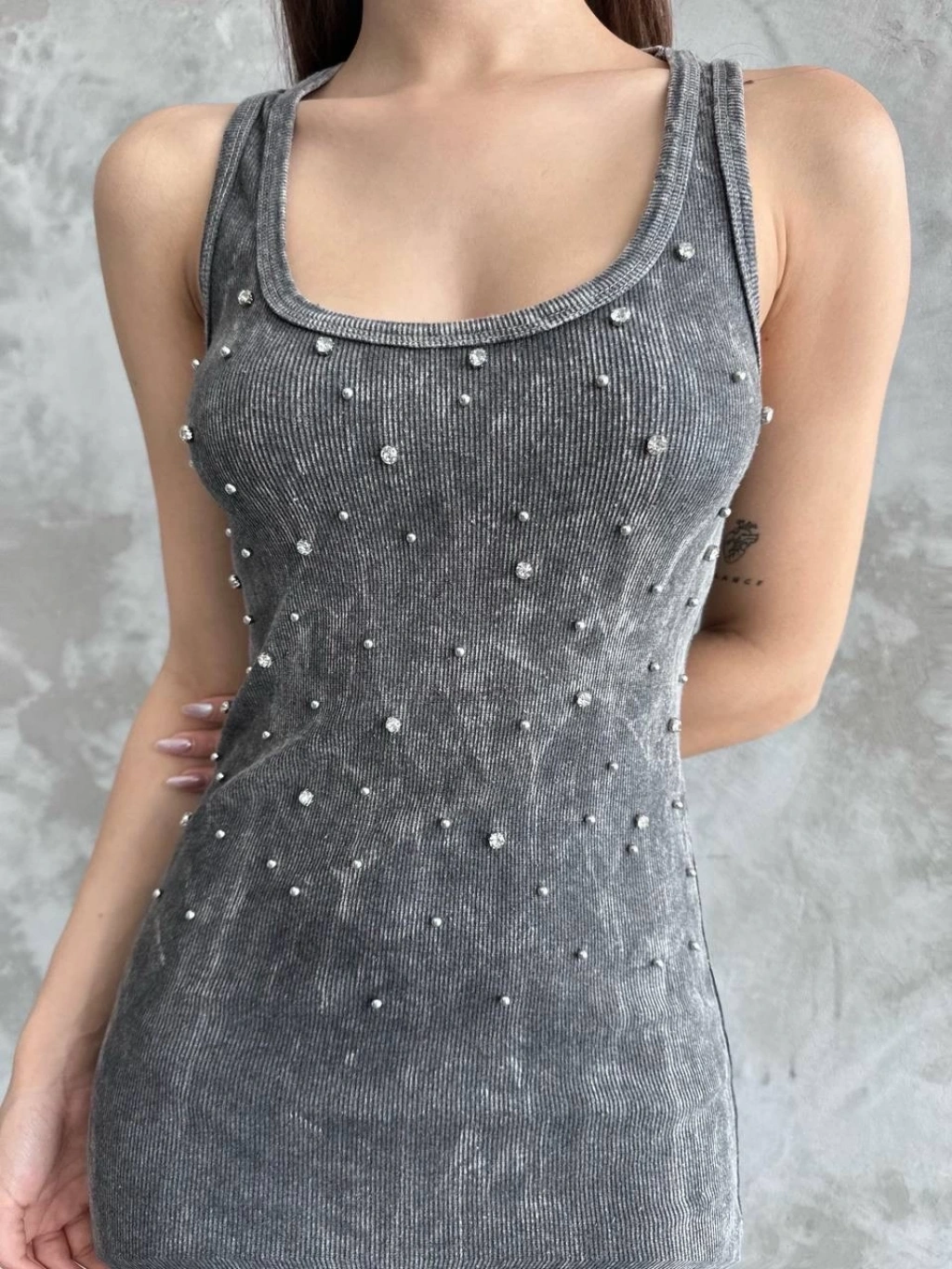Askılı ch kumaş düğmeli elbise gribeyaz h265007