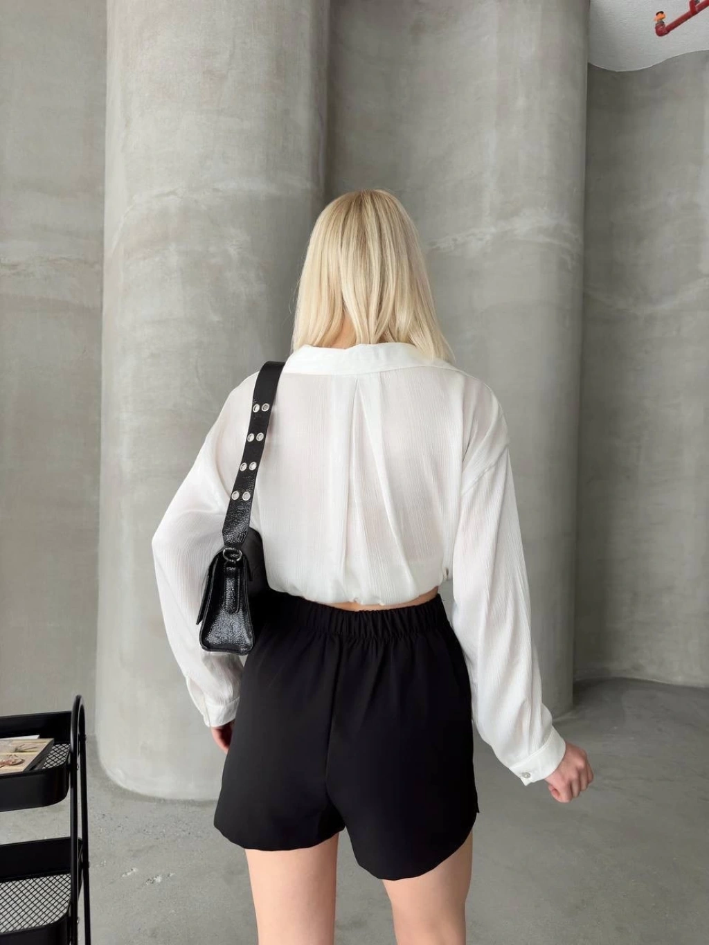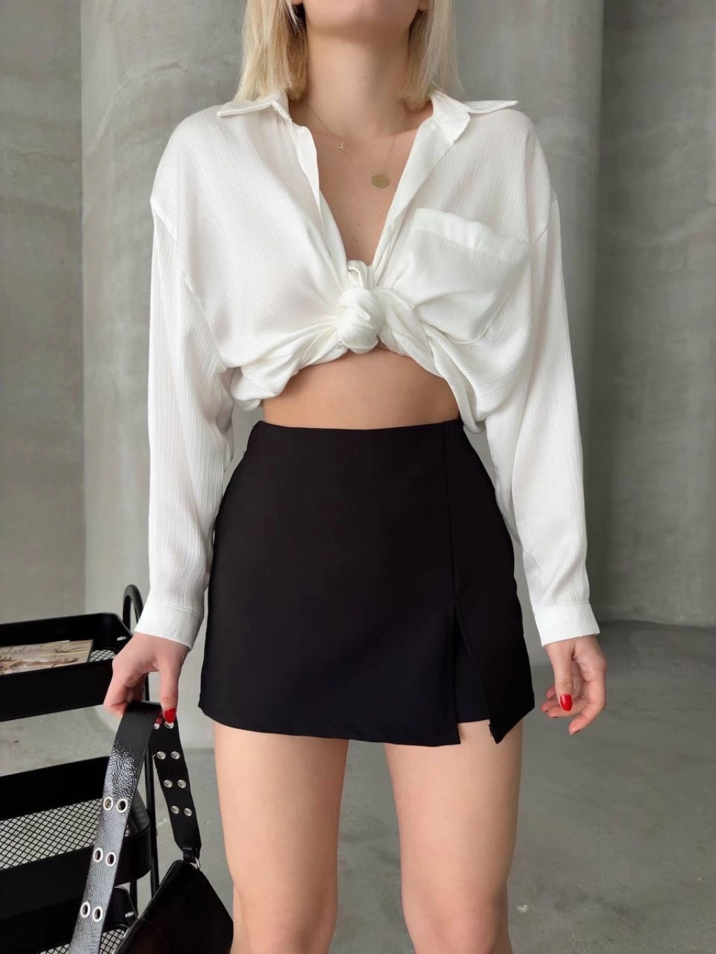İki düğmeli kaz ayağı desen ch kumaş şort etek siyahbeyaz h26414