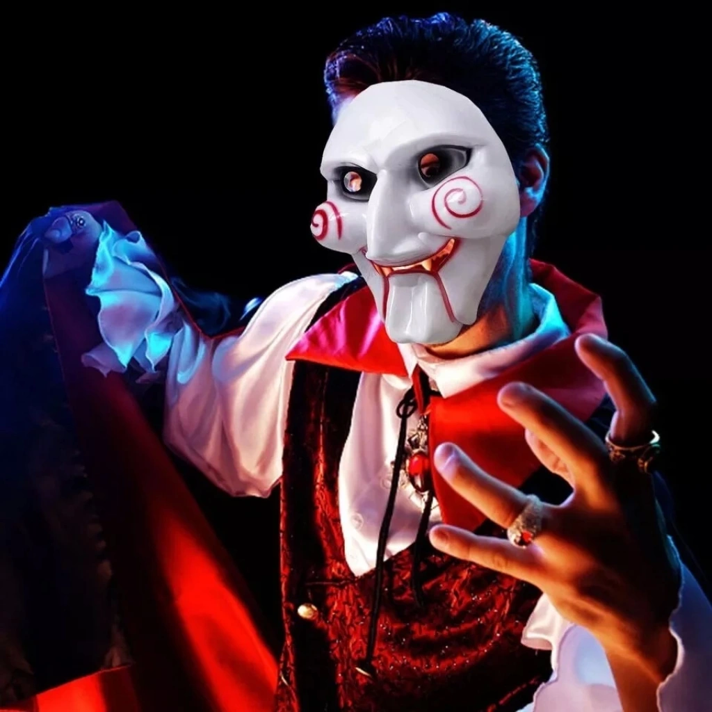 Siyah Kapüşonlu 120 cm Pelerin ve Beyaz Boyanabilir Tam Yüz Maske