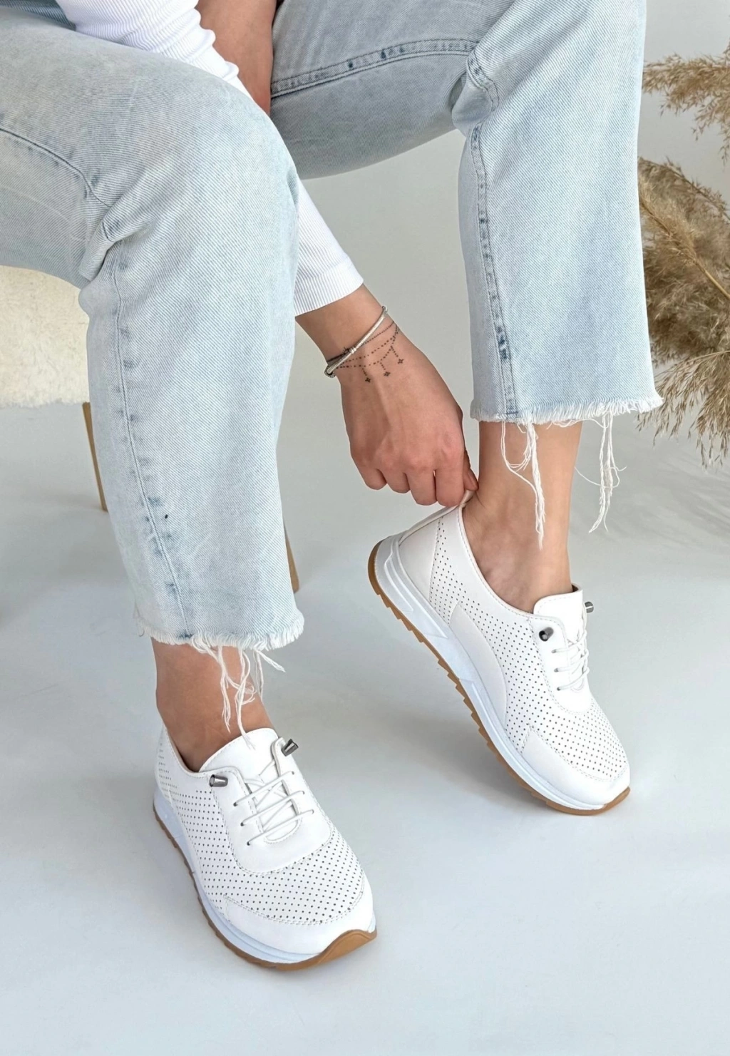 Jista Beyaz Cilt Bağcıklı Spor Ayakkabı
