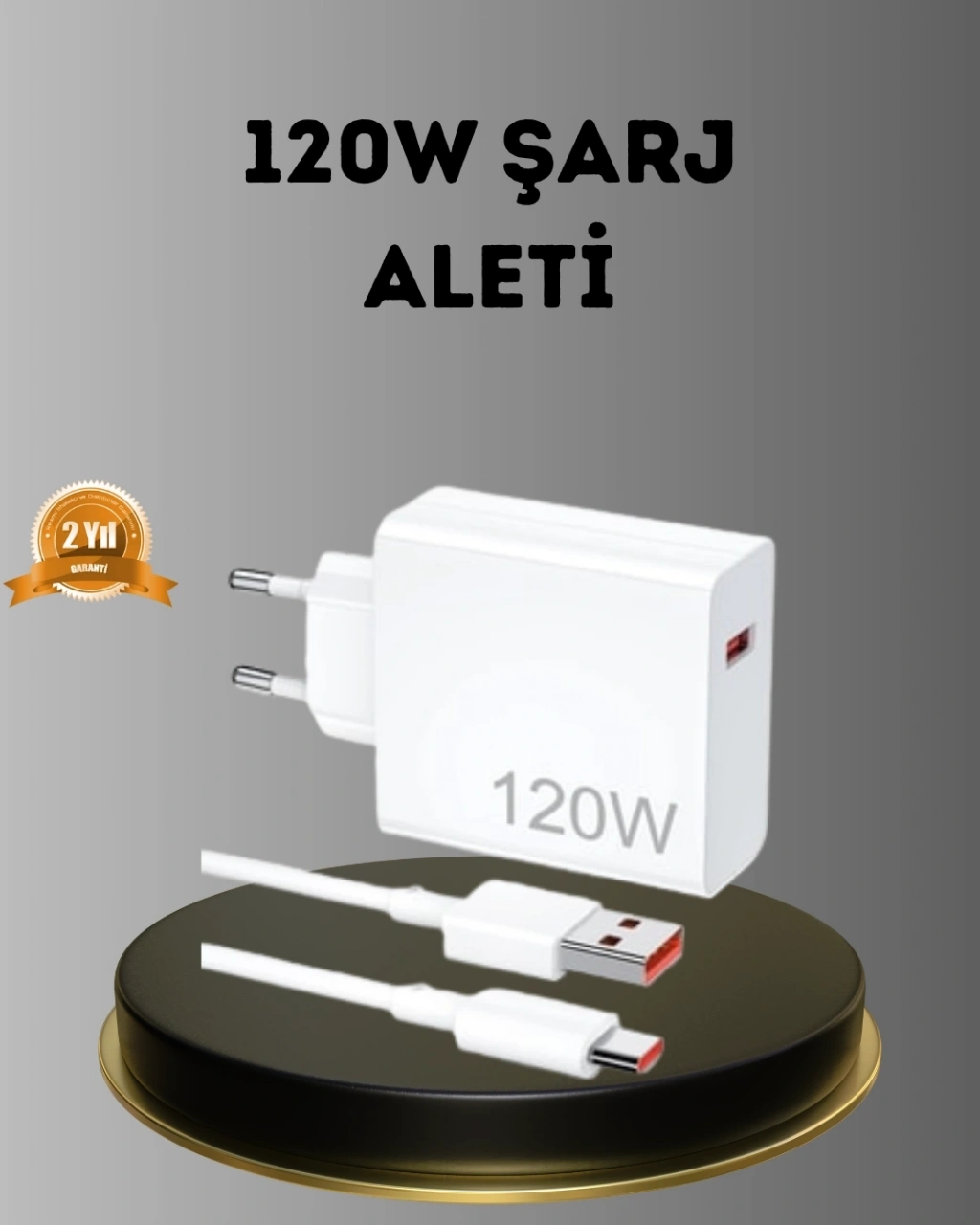 120W Süper Hızlı Şarj Adaptörü – Type-C Kablo Dahil, Yüksek Voltaj Korumalı