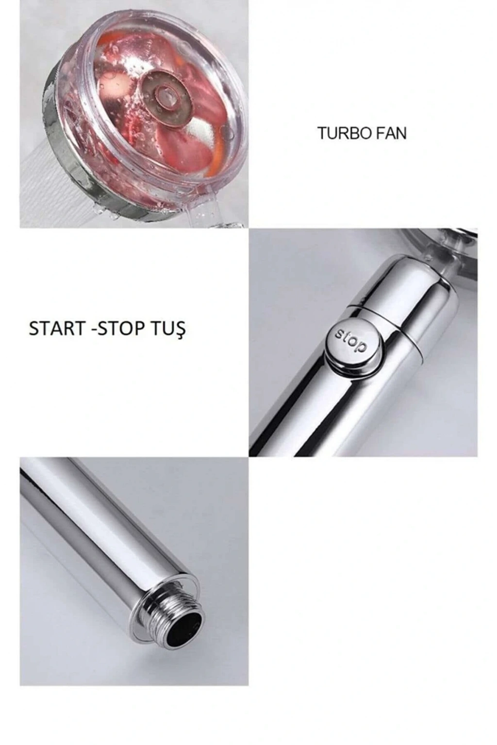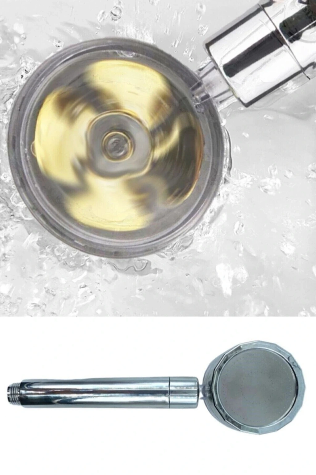 Turbo Duş Başlığı Su Tasarruflu 360 Hareketli Pervaneli Tazyikli Tuşlu Duş Başlığı (5047)
