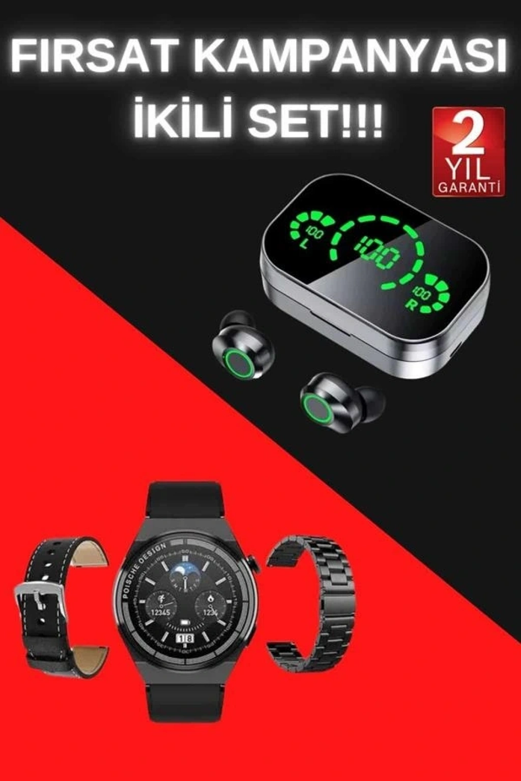 TWS Bluetooth Kulaklık ve Akıllı Saat Uyku Takibi Nabız Ölçer Uzun Pil Ömrü