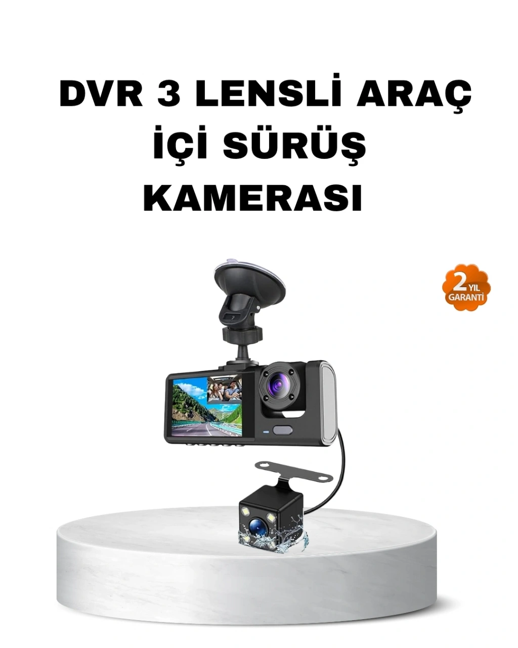 Üç Kameralı Araç DVR Full HD Gece Görüşlü ve 2 inç IPS Ekranlı