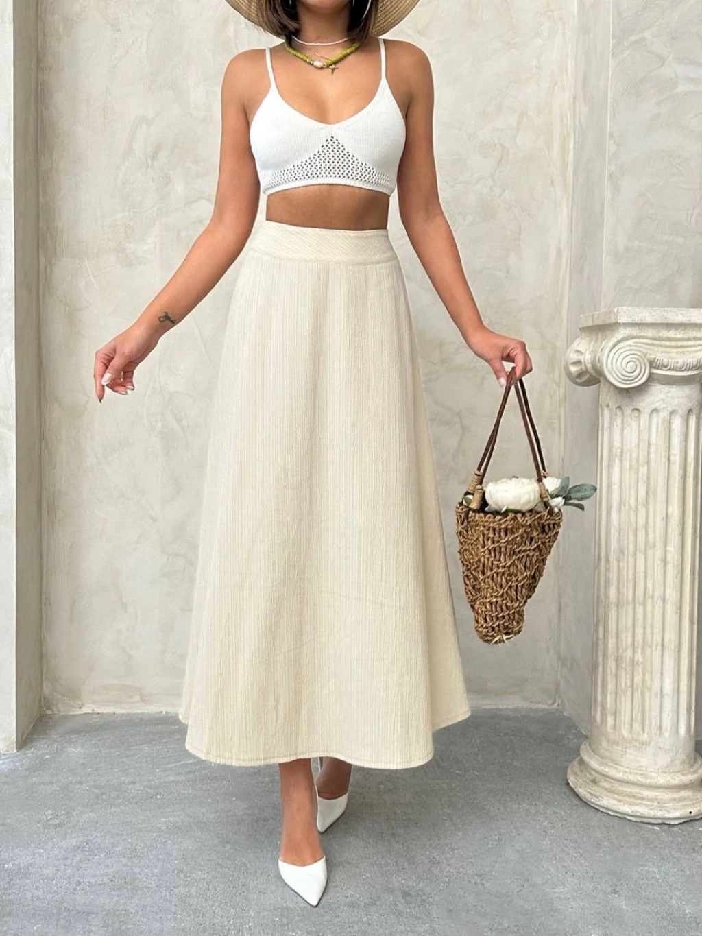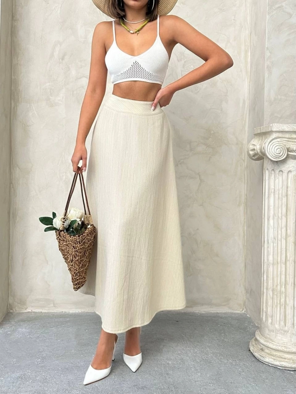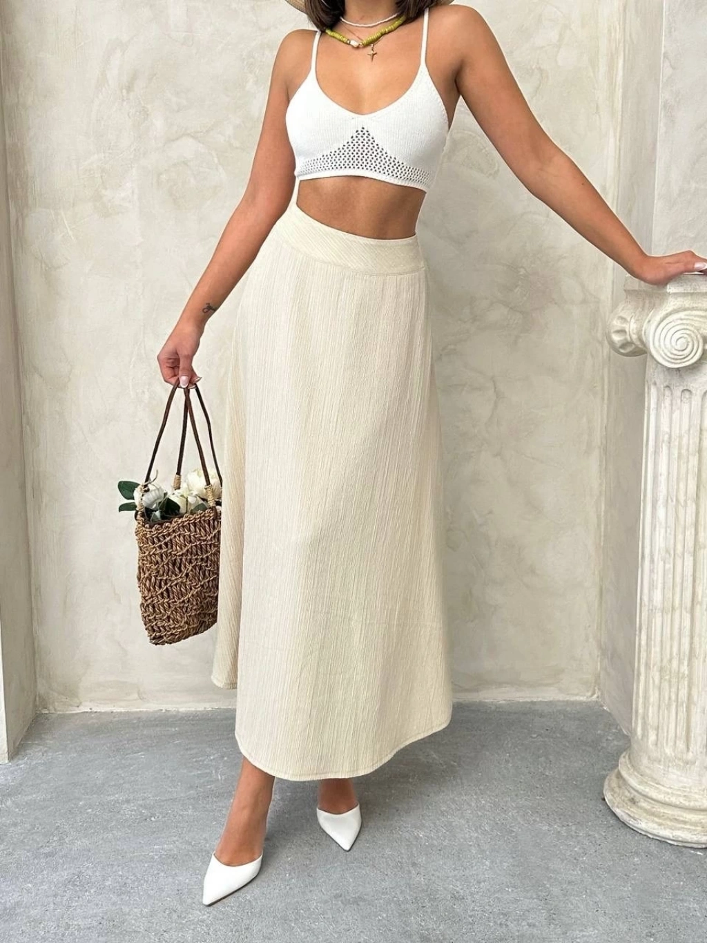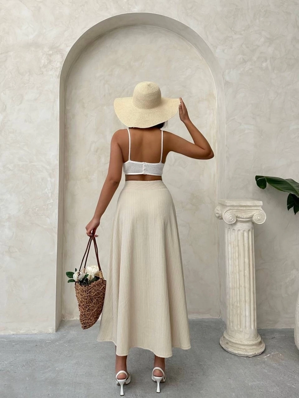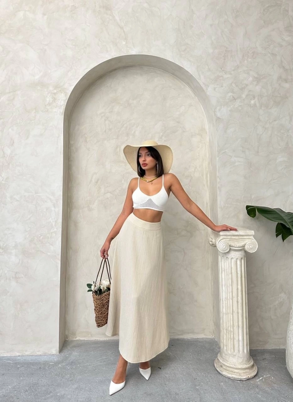 Cep detaylı oval kapaklı deri etek kahve h240048
