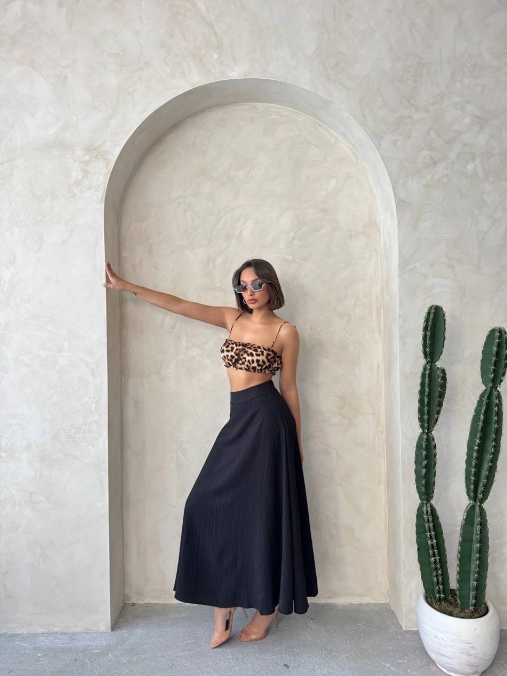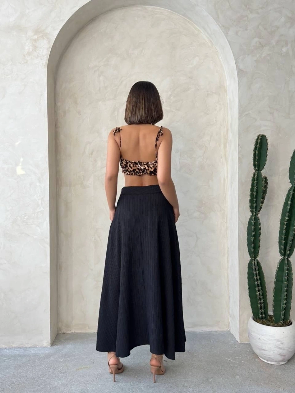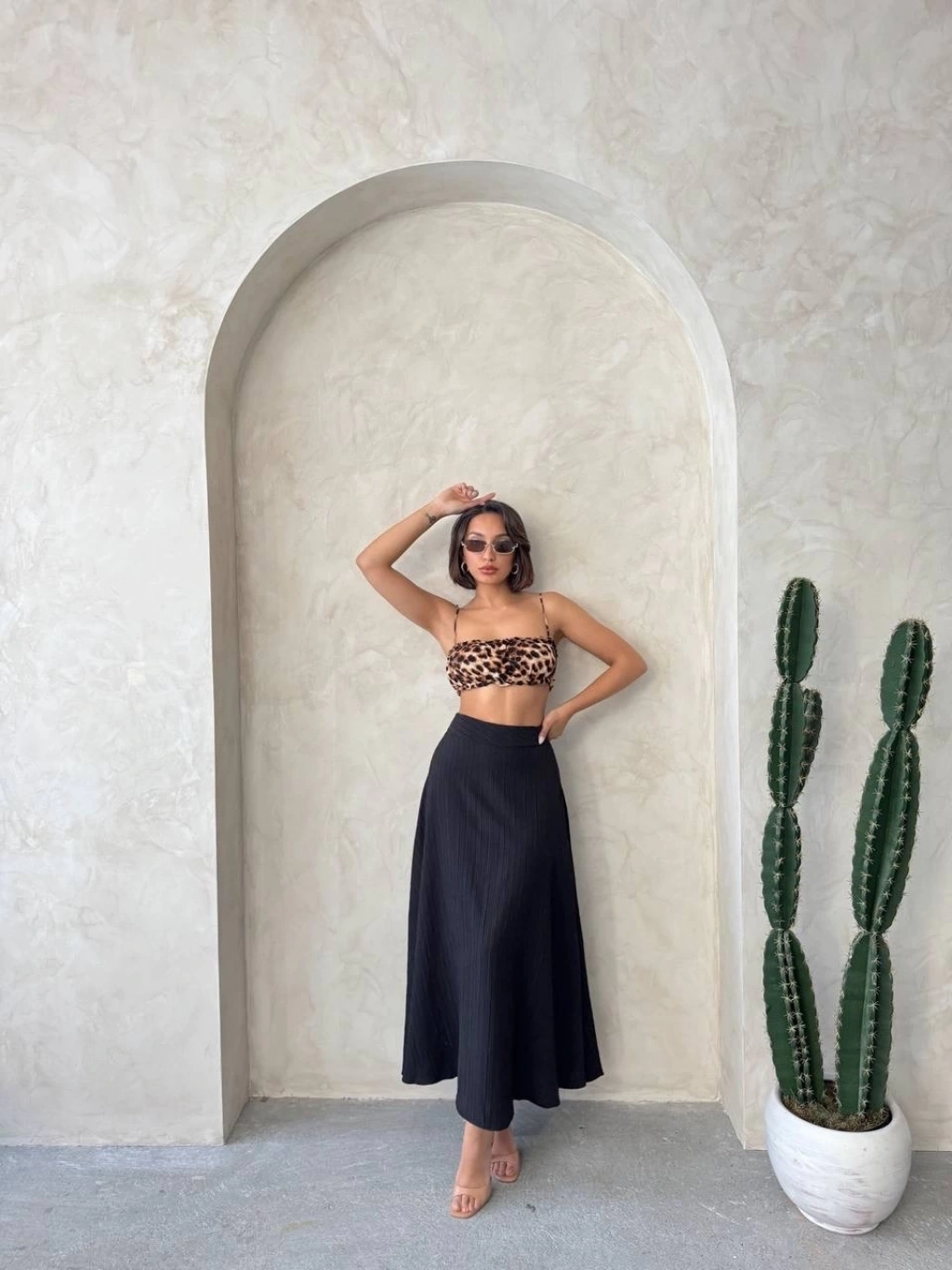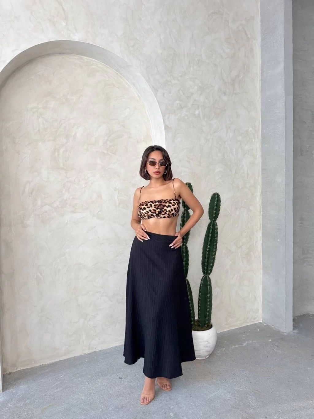 Cep detaylı oval kapaklı deri etek siyah h240048
