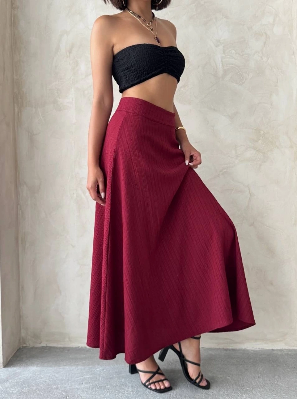 Midi boy deri kalem etek bordo h26780
