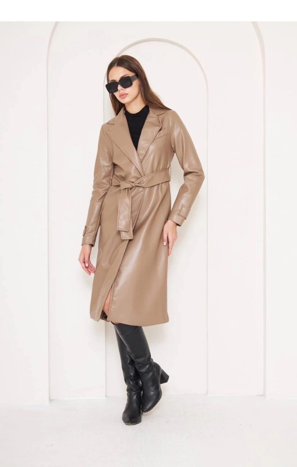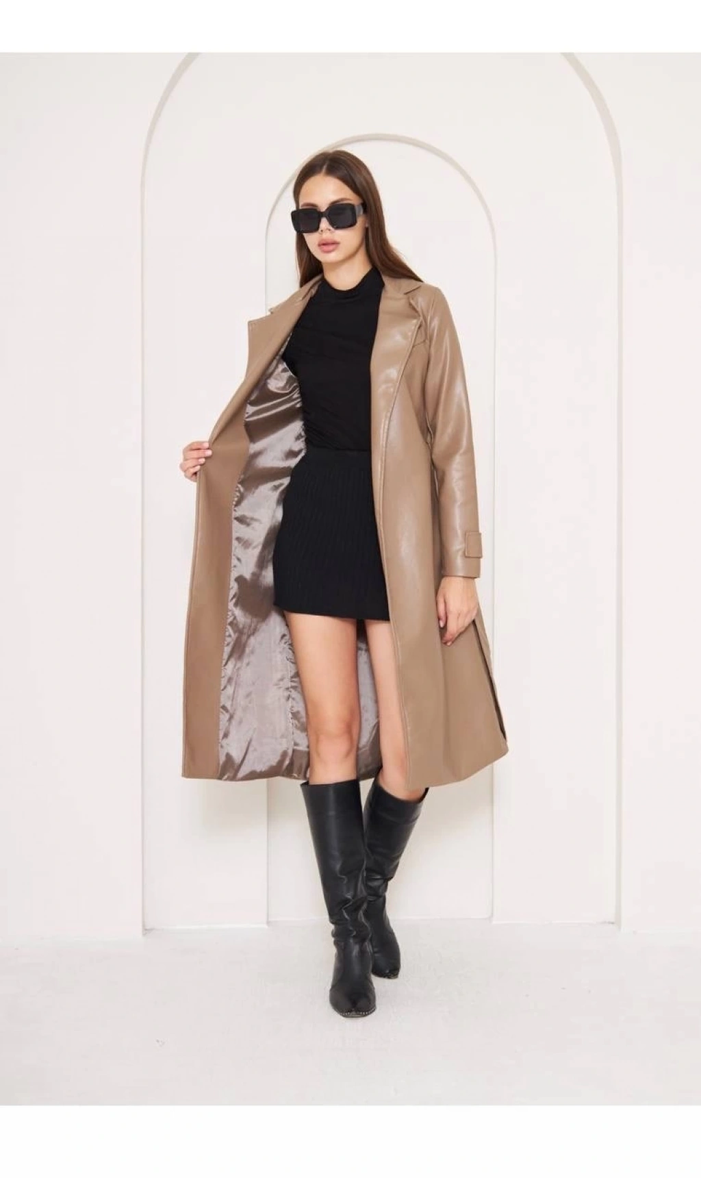 Deri garnili cepli peluş mont taba t1253