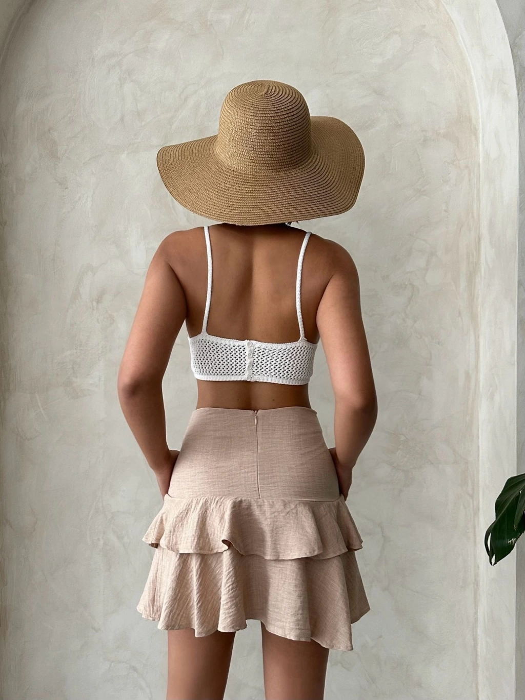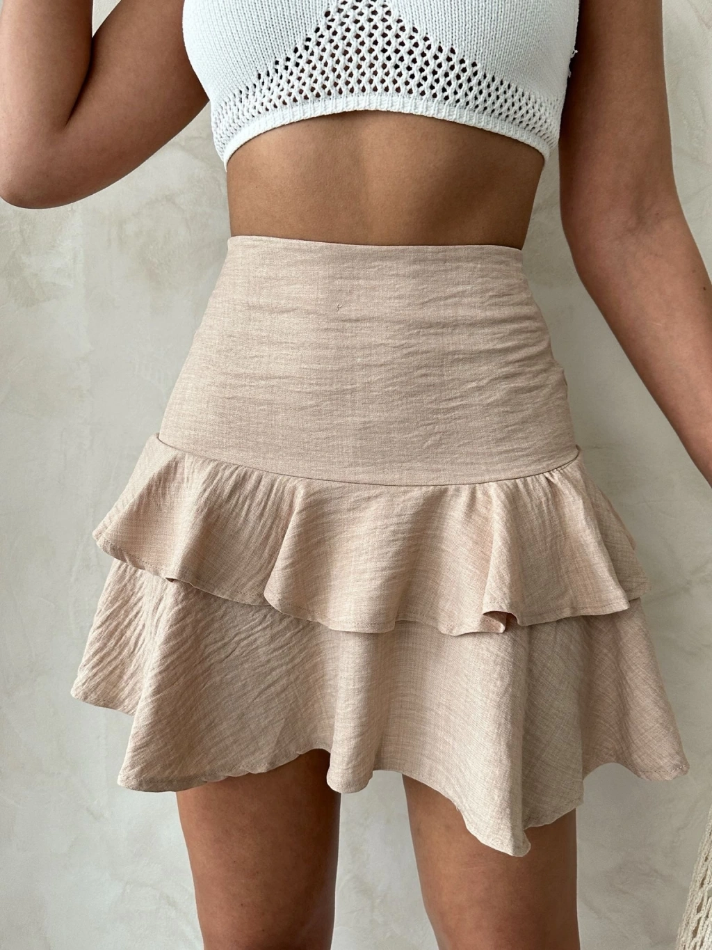 Cep detaylı oval kapaklı deri etek kahve h240048