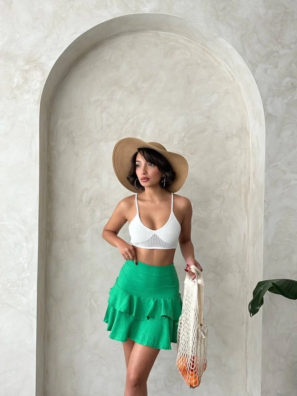 Cep detaylı oval kapaklı deri etek yeşil h240048