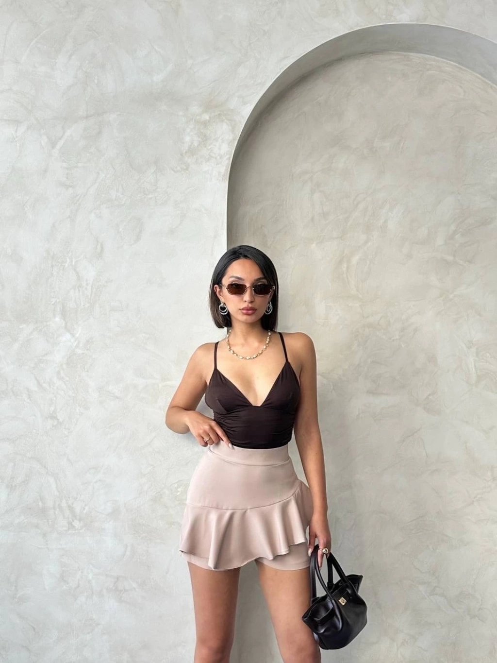 İki düğmeli kaz ayağı desen ch kumaş şort etek bordobeyaz h26414
